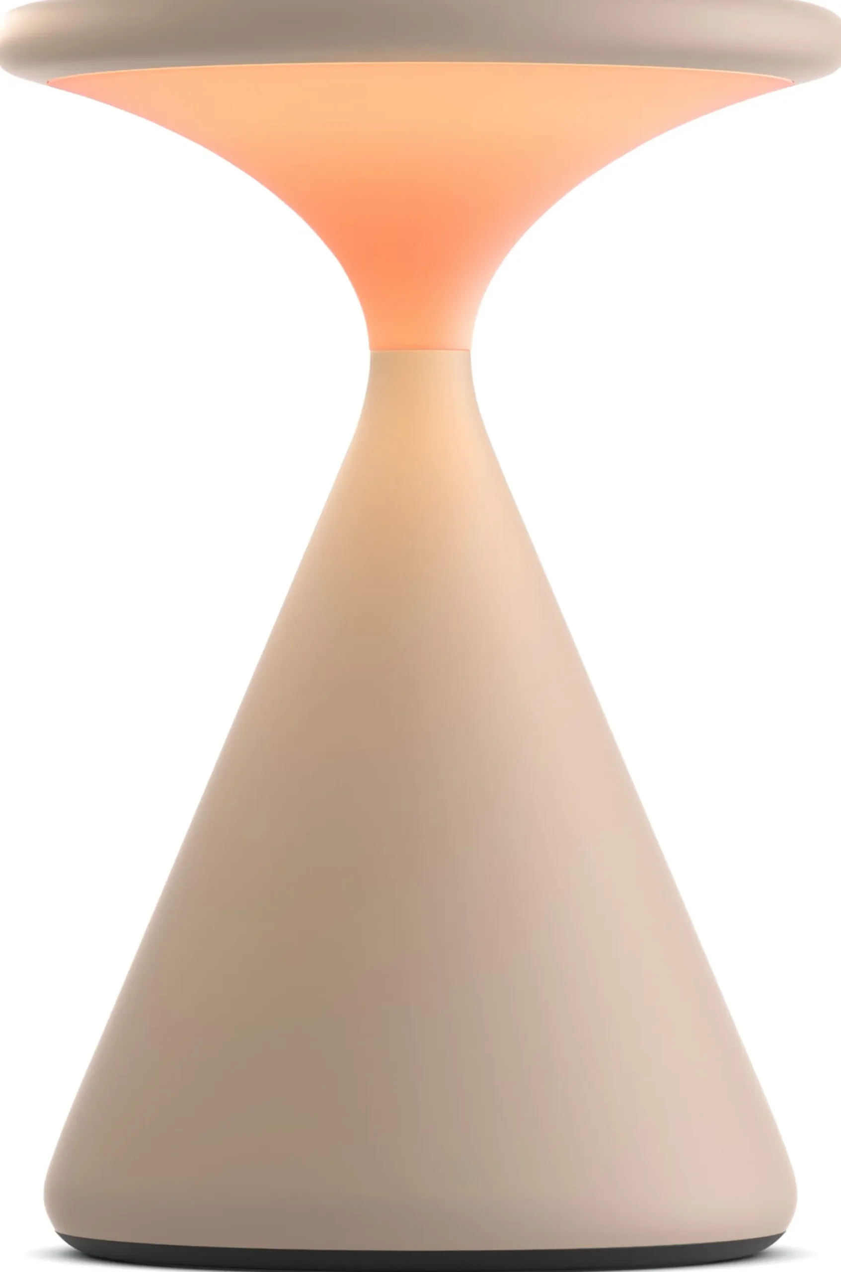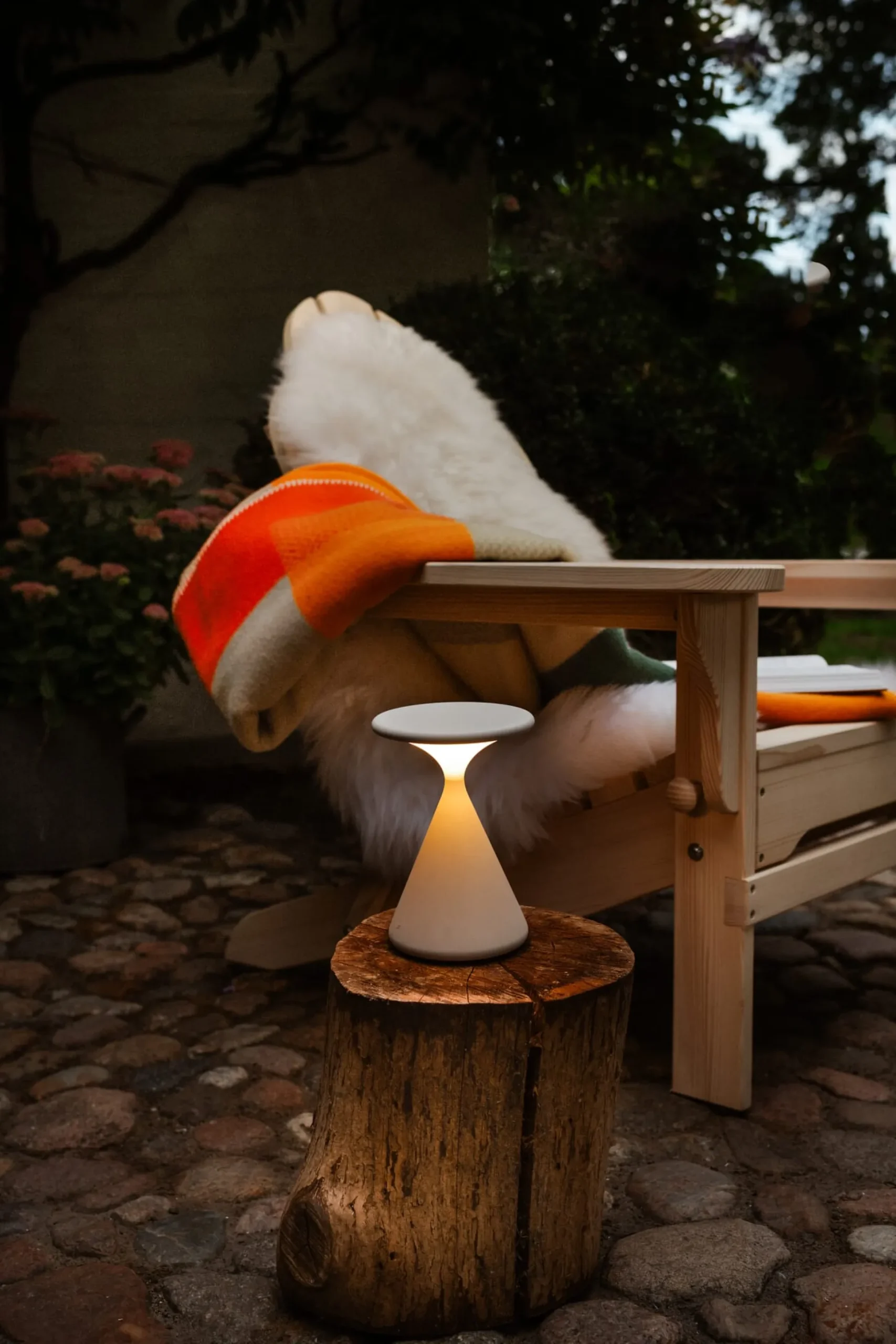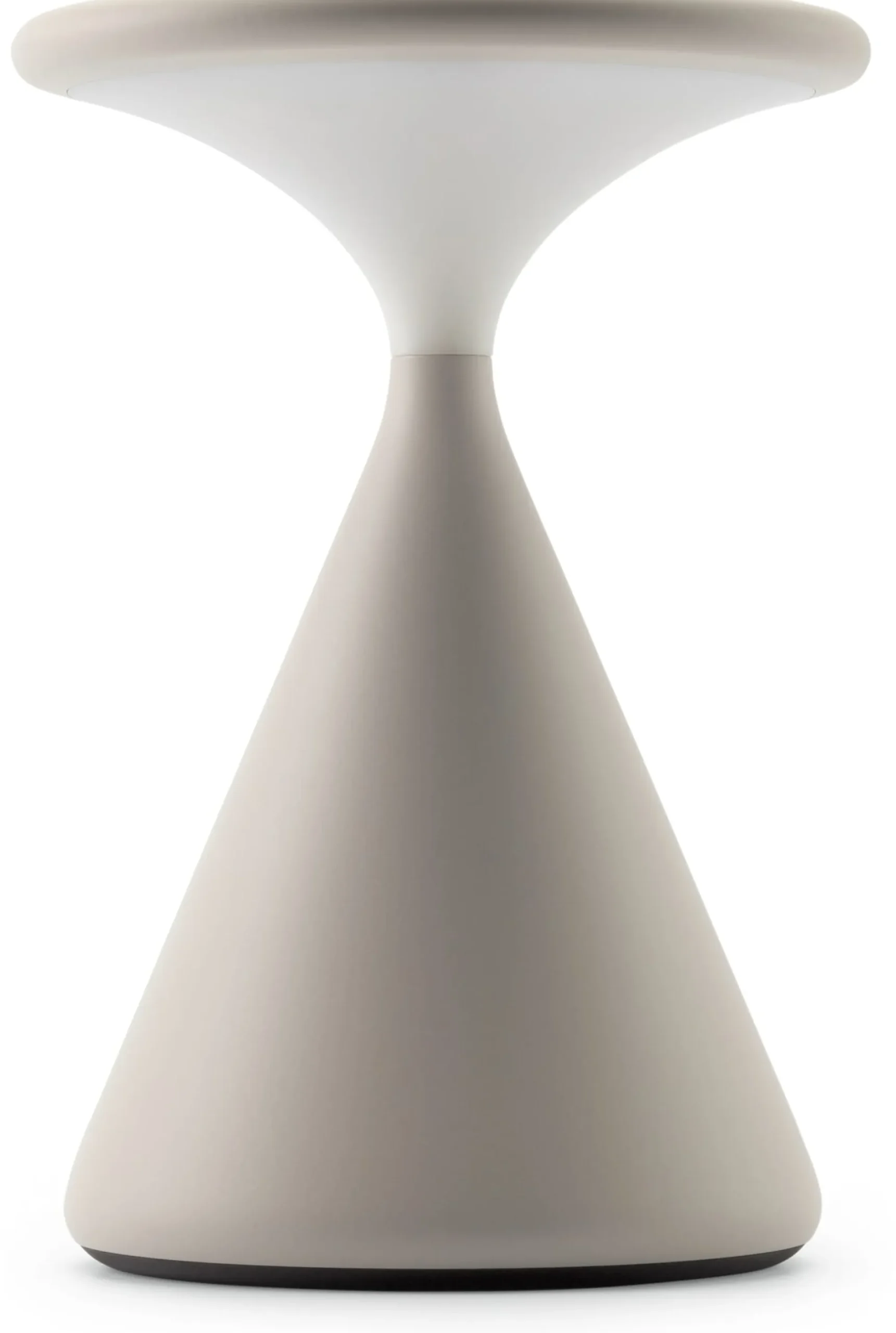 Mobile Akkuleuchten sind derzeit omnipräsent, was nicht zuletzt daran liegt, dass ihre Handhabung ungemein praktisch ist und die Leuchten vielseitig einsetzbar sind. Große Unterschiede gibt es jedoch auch hier – in Sachen Materialität, Form und Leistung. Hier kommt eine Leuchte von Grau in Hamburg, die unserer Meinung nach derzeit das oberste Ende in diesem Segment markiert. Das beginnt beim Material. Das Gehäuse besteht aus optisch wie haptisch angenehmem hellgrau pulverbeschichtetem Aluminiumdruckguss, der Diffusor ist aus stabilem Polycarbonat. Sodann die Funktion: Der Leuchtenkörper hat die Form eines Kegels, was einerseits Raum für die verbauten Akkus gibt, die der Leuchte eine Laufzeit von sage und schreibe 8 bis 150 Stunden spendieren. Andererseits reflektiert er das Licht in einem günstigen Winkel (wir erinnern uns: Einfallswinkel gleich Ausfallswinkel) in den Raum.
