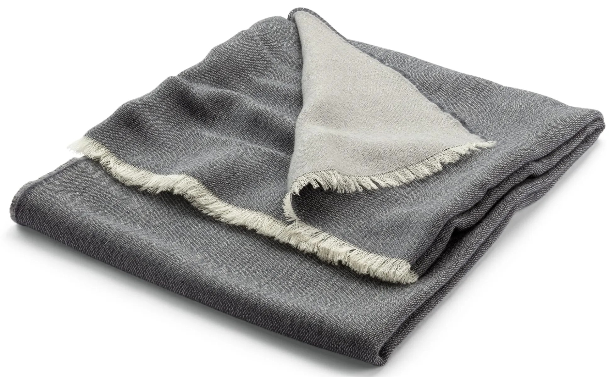 - Zweifarbig als Doubleface gewebt mit Eyelash-Fransen