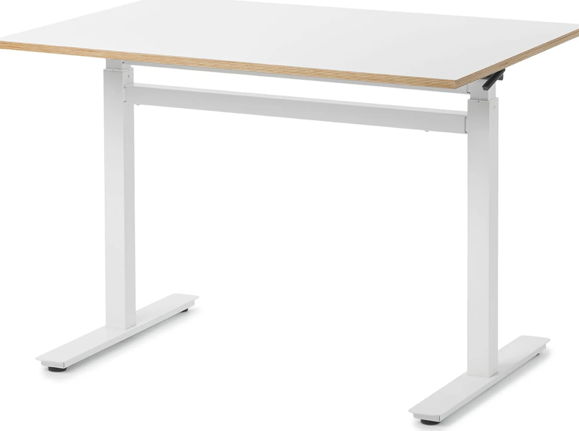 Tischgestell in Schweden, Tischplatte in Deutschland gefertigt. WORK ist ein kompakter, über eine Gasdruckfeder höhenverstellbarer Schreibtisch, der den Arbeitsplatz flexibel und ergonomisch macht. Das Gestell ist aus pulverbeschichtetem Stahl, die Tischplatte exklusiv für MAGAZIN in weiß melaminbeschichtetem Birkenmultiplex gefertigt. Der Tisch bietet ausreichend Platz für Laptop, Maus, Unterlagen und Arbeitsleuchte. Dank der mechanischen Höhenverstellung benötigt das Gestell keine Stromversorgung und kann überall platziert werden. Stufenlos höhenverstellbar zwischen 72 cm und 116 cm.