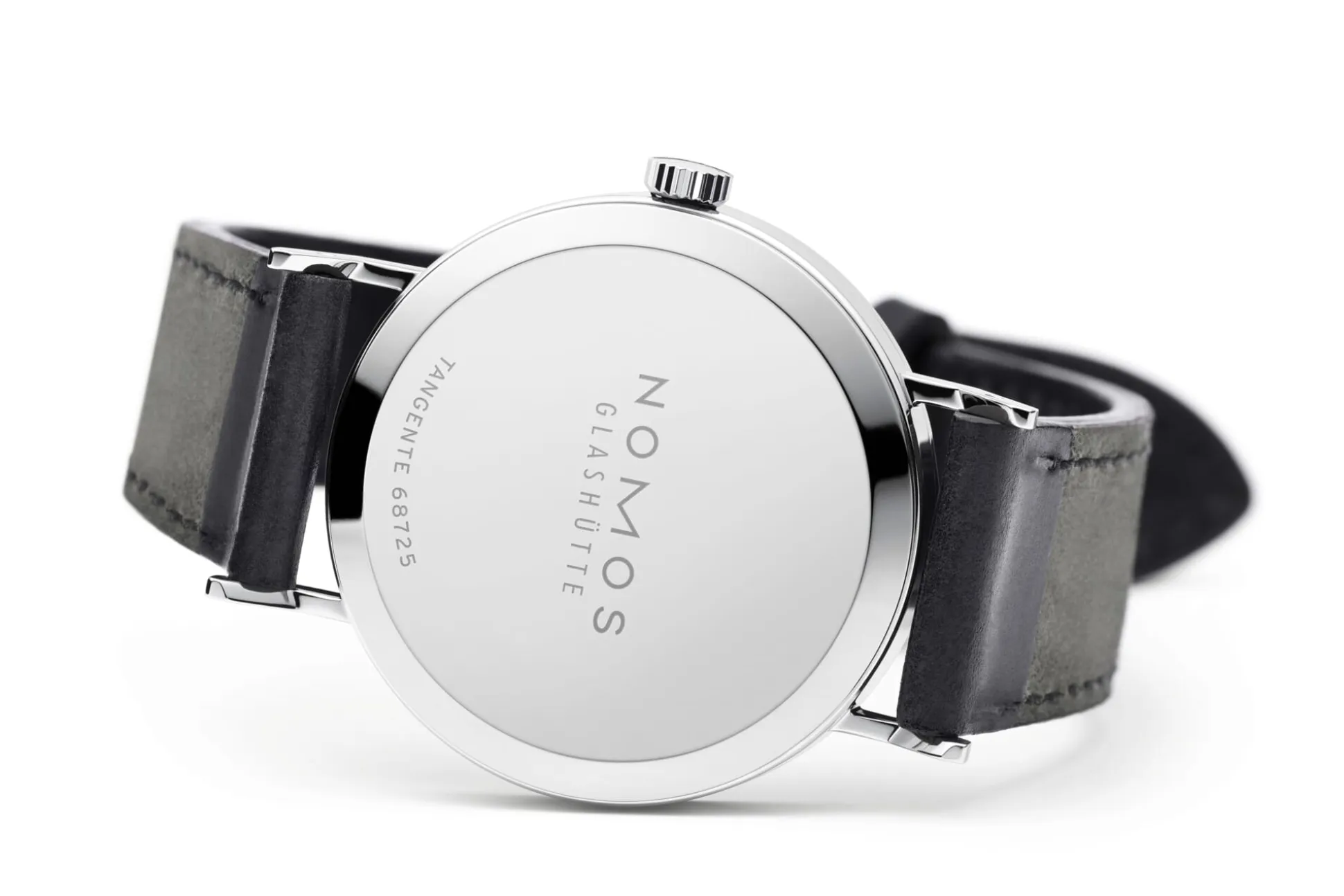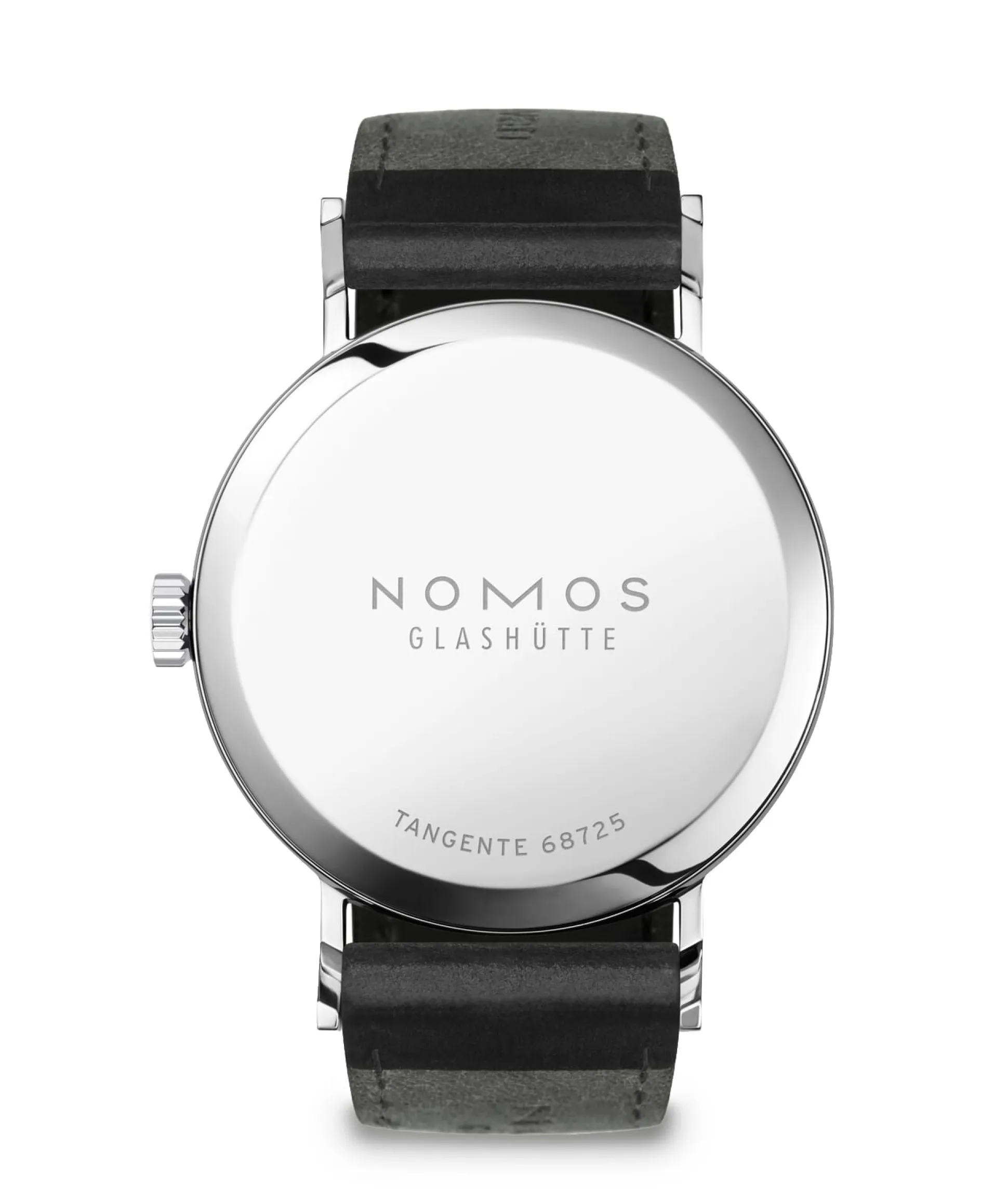 Als gestalterische Meisterleistung gilt die Tangente seit ihrem Erscheinen zu Beginn der 1990er Jahre. Vor Jahren, als wir die Uhr zum ersten Mal anboten, mochten wir uns nicht dazu hinreißen lassen, die seinerzeit noch relativ neue Tangente als Klassiker zu bezeichnen. Dies ist heute anders, wie auch die Vielzahl nachempfundener Uhren und vor allem die ellenlange Liste von Auszeichnungen beweisen. Die Gestaltung der Nomos Tangente lehnt sich an einen Entwurf aus den 1920er Jahren an, der seinerzeit keine Beachtung fand – Nomos Glashütte hat ihn perfektioniert und ins Heute übersetzt. Wir bieten die Tangente mit Saphirglasabdeckung und Stahlboden an.