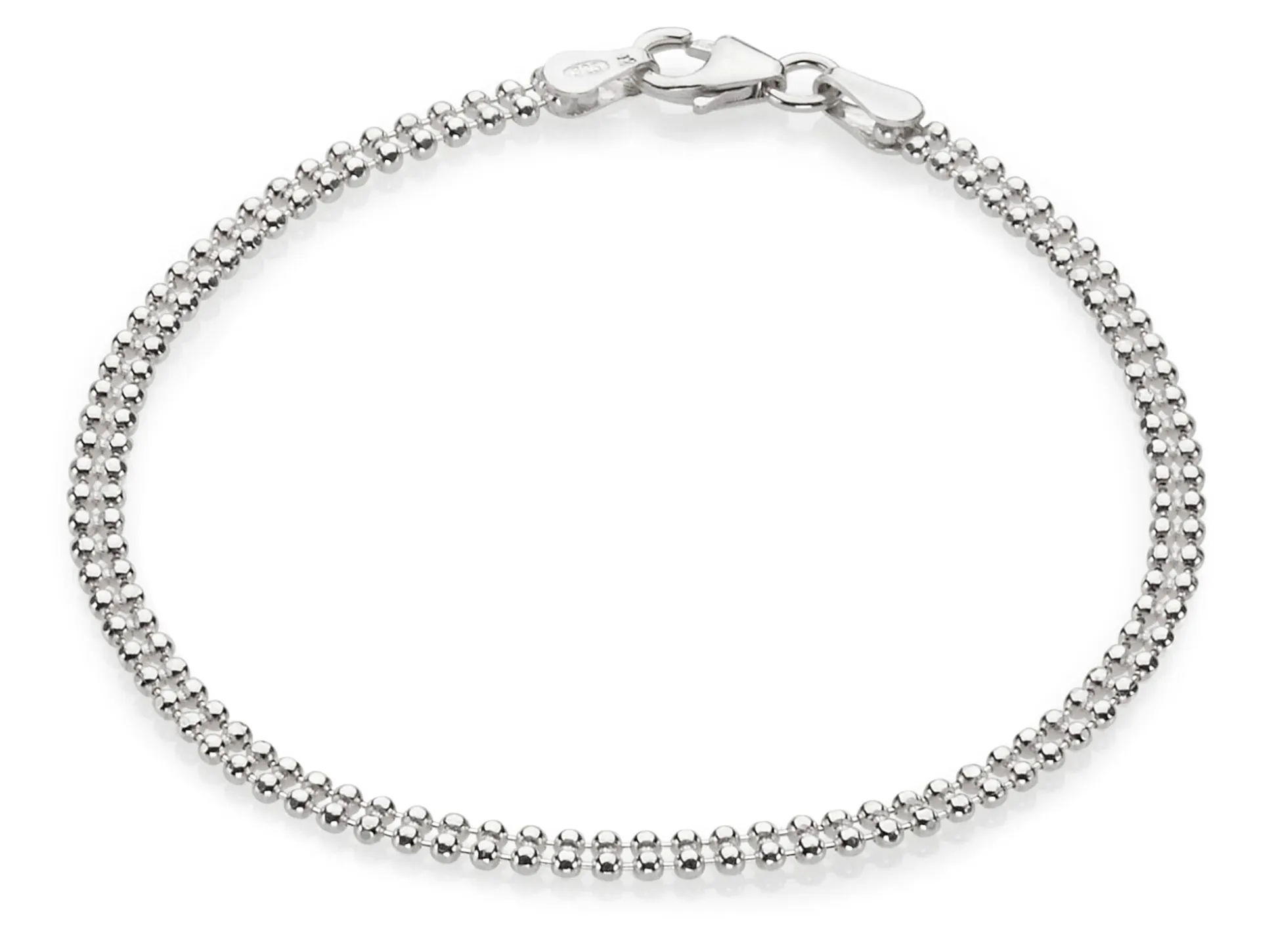 Zart, fließend und funkelnd präsentiert sich diese Armkette aus dem Hause Menard. Das liegt daran, dass die Kanten der Kettenglieder mittels Spezialwerkzeugen einen Glanzschnitt bekommen haben – man spricht hier von diamantiert. Die Kette hat eine angenehme Stabilität, ist aber zugleich geschmeidig, wodurch sie angenehm auf der Haut liegt. Die Armkette hat einen Karabinerverschluss.