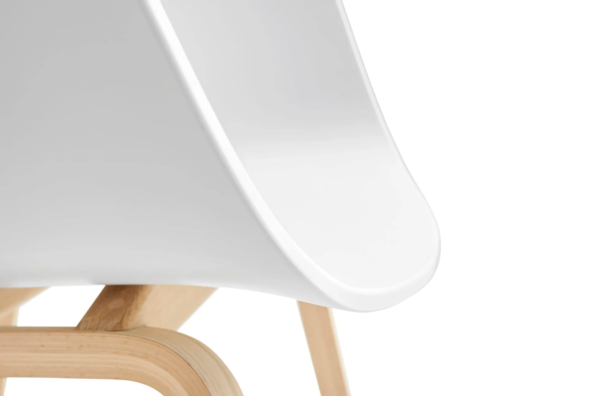 Formschöne, weit umschließende Sitzschale auf vierbeinigem Schichtholzgestell aus Buchenholz mit Eichenfurnier. Die filigrane und leicht elastische Sitzschale von ABOUT A CHAIR ECO besteht zu 100 % aus recyceltem Polypropylen. Dank eines neuen, besonders reinen Reyklats als Ausgangsstoff für die Sitzschale, zeigt diese Generation der ECO-Variante ein besonders reines weiß. Keine Spur mehr von Rückständen und Farbschleier.