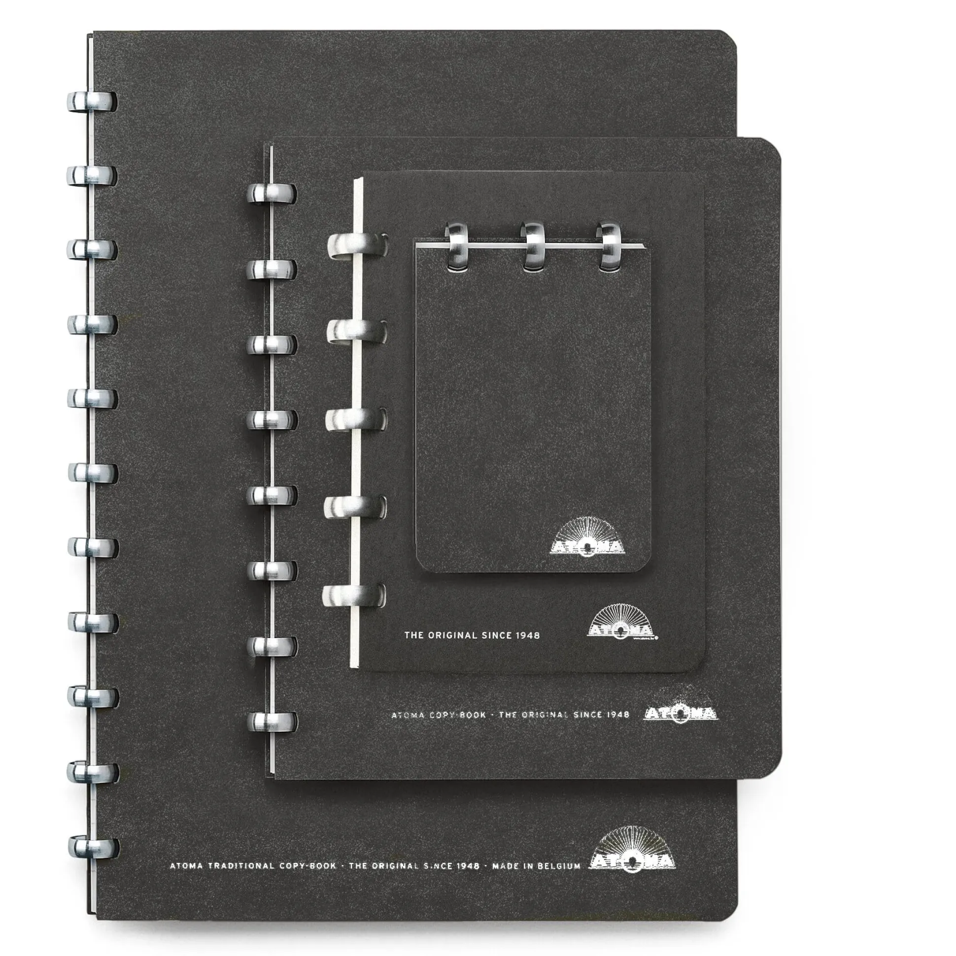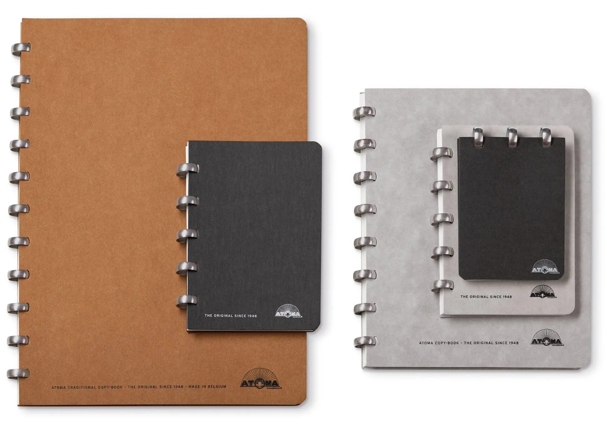 Die seit 1948 unter der Marke „Atoma“ angebotenen Notizhefte der Brüsseler Papeteries G. Mottart sind ein Standard – zumindest in Belgien; dort kennt und schätzt jedes Kind die simple, aber immens praktische Bindetechnik von Atoma. Dass sich deren erstaunlicher arbeitsmethodischer Nutzen erst auf den zweiten Blick offenbart, mag erklären, warum das Atoma-Zeitalter hierzulande noch nicht angebrochen ist.