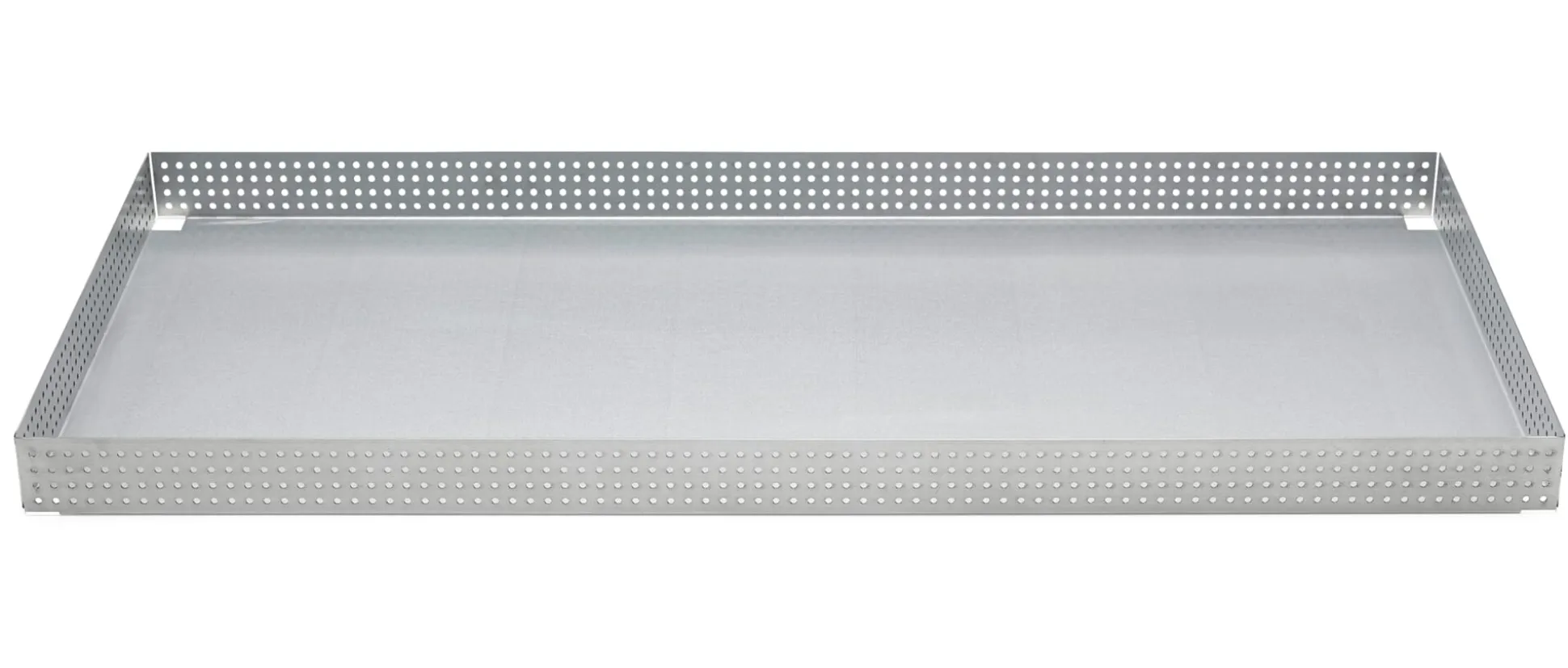 Wie eine Wanne sitzt dieser Aufsatz aus Stahlblech als oberer Abschluss auf dem CONTAINER DS, CONTAINER DS AIR, CONTAINER DS mit Schloss, CONTAINER DS FLAT oder dem Regalelement TARA. Dabei halten die Aussparungen an den vier Ecken den Aufsatz formschlüssig auf dem jeweiligen Unterbau. Eine praktische Ergänzung als Ablage in Büro, Wohnraum oder Eingangsbereich und für viele andere Zwecke.
