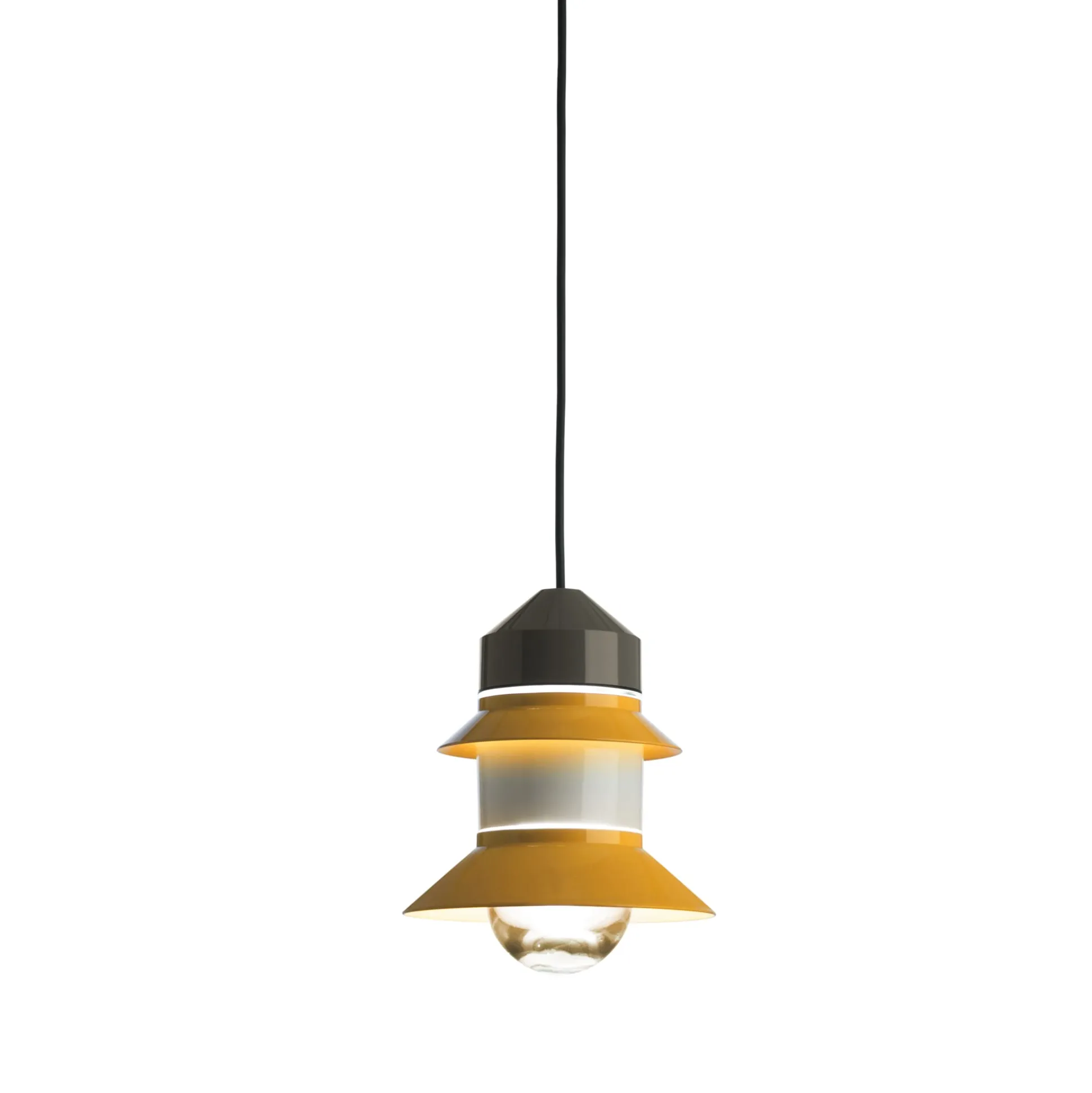 Für Garten, Terrasse oder Balkon: SANTORINI erinnert an Laternen auf Fischerbooten. Die Schirme aus Polycarbonat, die auf dem Diffusor aus mundgeblasenem Glas angebracht werden, können bei der Montage in ihrer Reihenfolge und Ausrichtung verschieden angeordnet werden und beeinflussen somit die Lichtwirkung. Die Leuchte ist mit einem 4,35 m langen Gummikabel mit Schutzkontaktstecker (Typ F) ausgestattet und kann mithilfe ihrer Schlaufe an Baum, Haken, Sonnenschirm, einer gespannten Schnur oder einem separat zu bestellende Wandhaken aufgehängt werden. Mit Verwendung eines Adapters kann SANTORINI als Girlande in Reihe geschaltet werden. Dazu wird kein zusätzliches Kabel benötigt. Kabel: L 435 cm, Schutzart: IP65, Fassung: E27. Leuchtmittel im Lieferumfang nicht enthalten. Leistungsaufnahme: max. 15 W.