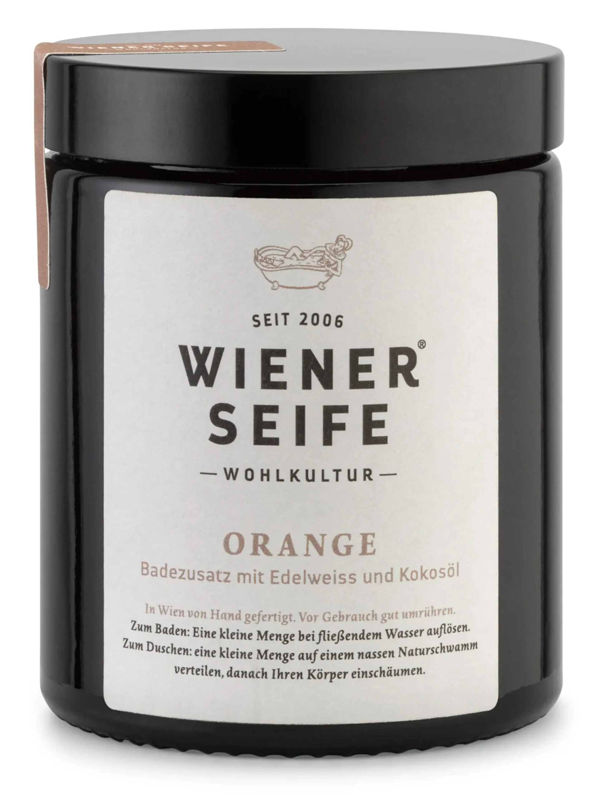 Der Badezusatz von Wiener Seife ist – ungewöhnlich – von cremiger Konsistenz. Wie andere Badezusätze auch, löst er sich im Badewasser schnell auf und verströmt dann seinen intensiven Duft. Naturreine Pflanzenöle und hochwertiges Edelweißextrakt verleihen ihm seine wohltuende, pflegende Wirkung, sie unterstützen die natürliche Barrierefunktion der Haut und machen sie seidig weich.