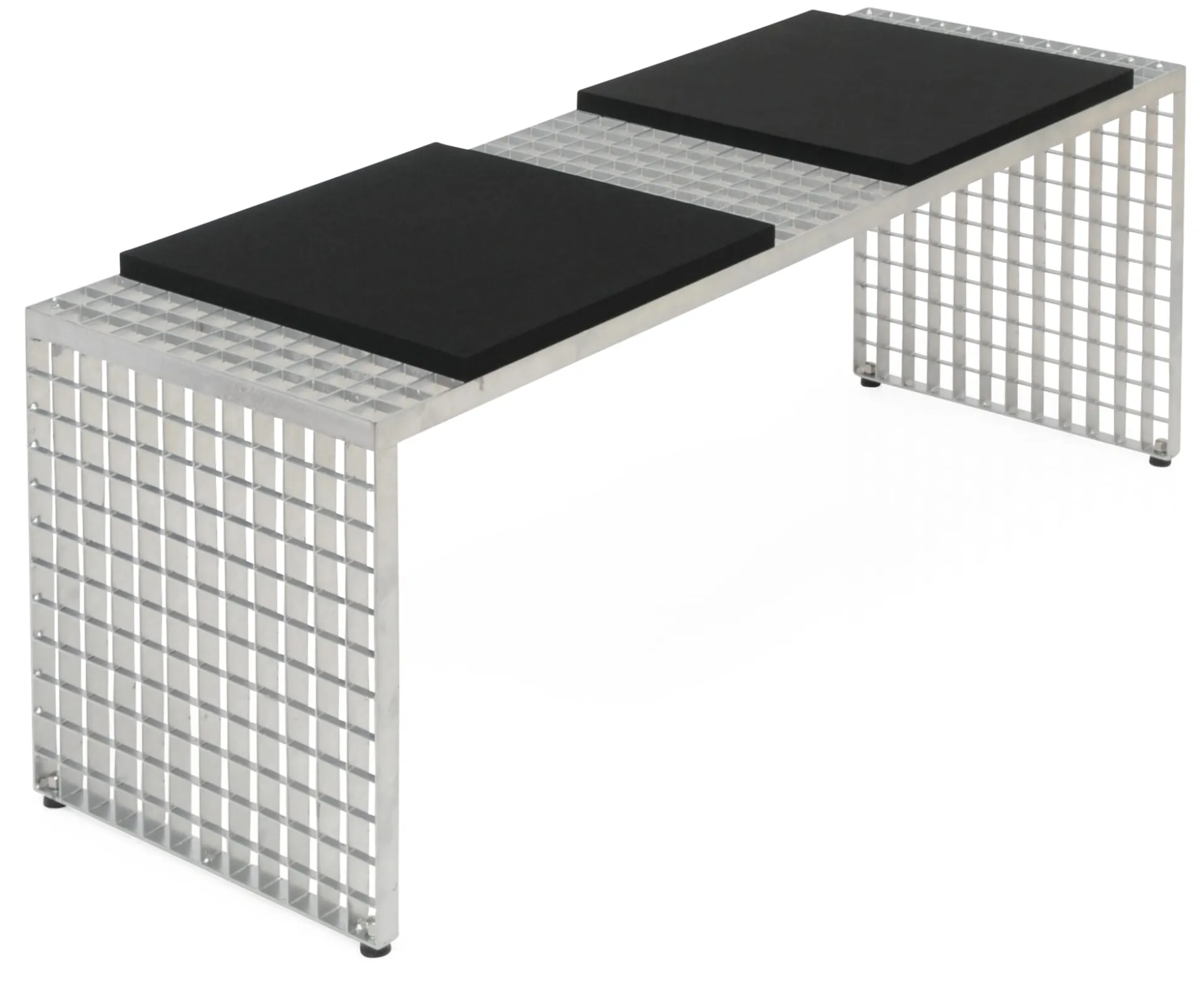 Die modularen Elemente der Serie SKWER stellen somit in Form, Material und unübertroffener Robustheit eine wirkliche Alternative zu Holz- und Kunststoffmobiliar dar. Rostfrei und unempfindlich gegen Witterungseinflüsse jeglicher Art nimmt die feuerverzinkte Oberfläche im Laufe ihres Alterns eine adelnde mattgraue Patina an.