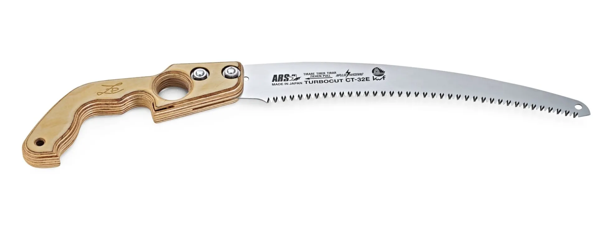 Sägeblatt aus Kohlenstoffstahl, hartverchromt. Griff aus Birkenschichtholz, geölt. Hergestellt in Japan.