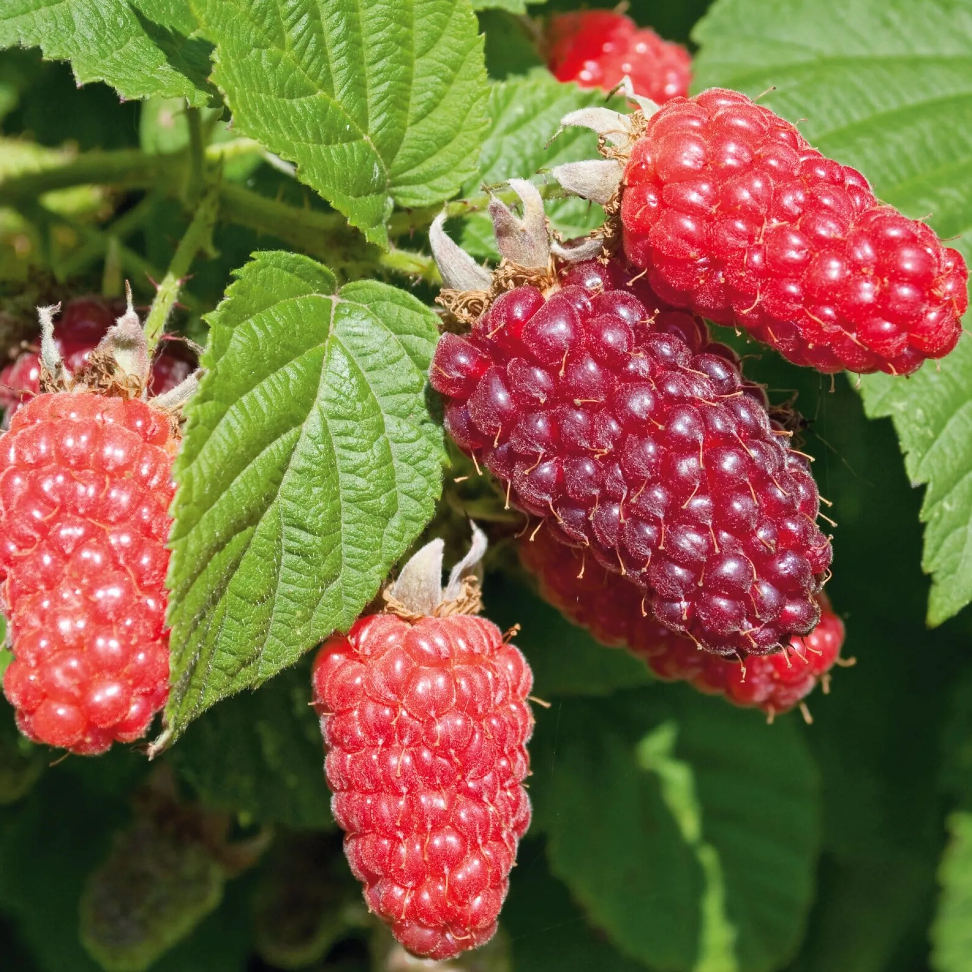 Dieses Beerenobst wurde 1962 in Schottland aus einer Kreuzung von Brombeere und Himbeere gezüchtet und dem schottischen Fluss Tay benannt. Taybeeren sind relativ robust und kälteresistent, weshalb sie in Schottland hoch geschätzt werden. Wir bieten eine stachellose Auslese, die problemlos geschnitten, formiert und beerntet werden kann.