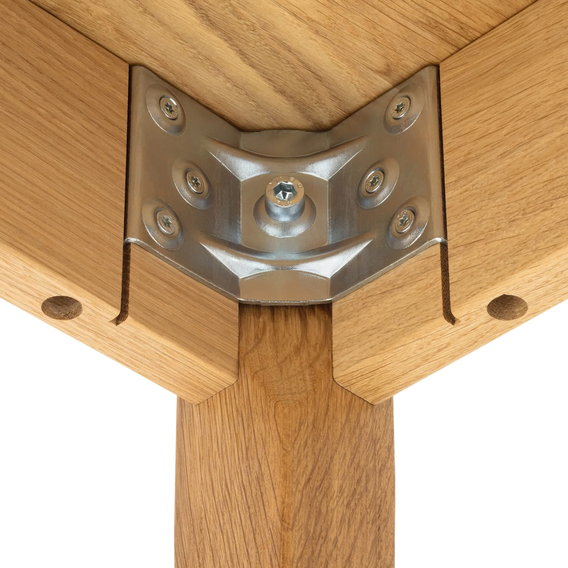 Der Beistelltisch wird zerlegt geliefert – doch Sie müssen lediglich die Tischbeine selbst an die Zargen schrauben. Die Montage ist schnell erledigt und erfolgt mithilfe von Maschinenschrauben und Gewindehülsen. Im Unterschied zu handelsüblichen Madenschrauben ist diese Verbindung sehr stabil und kann beliebig oft gelöst und neu verschraubt werden, ohne auszuschlagen und an Passgenauigkeit und Zusammenhalt zu verlieren.