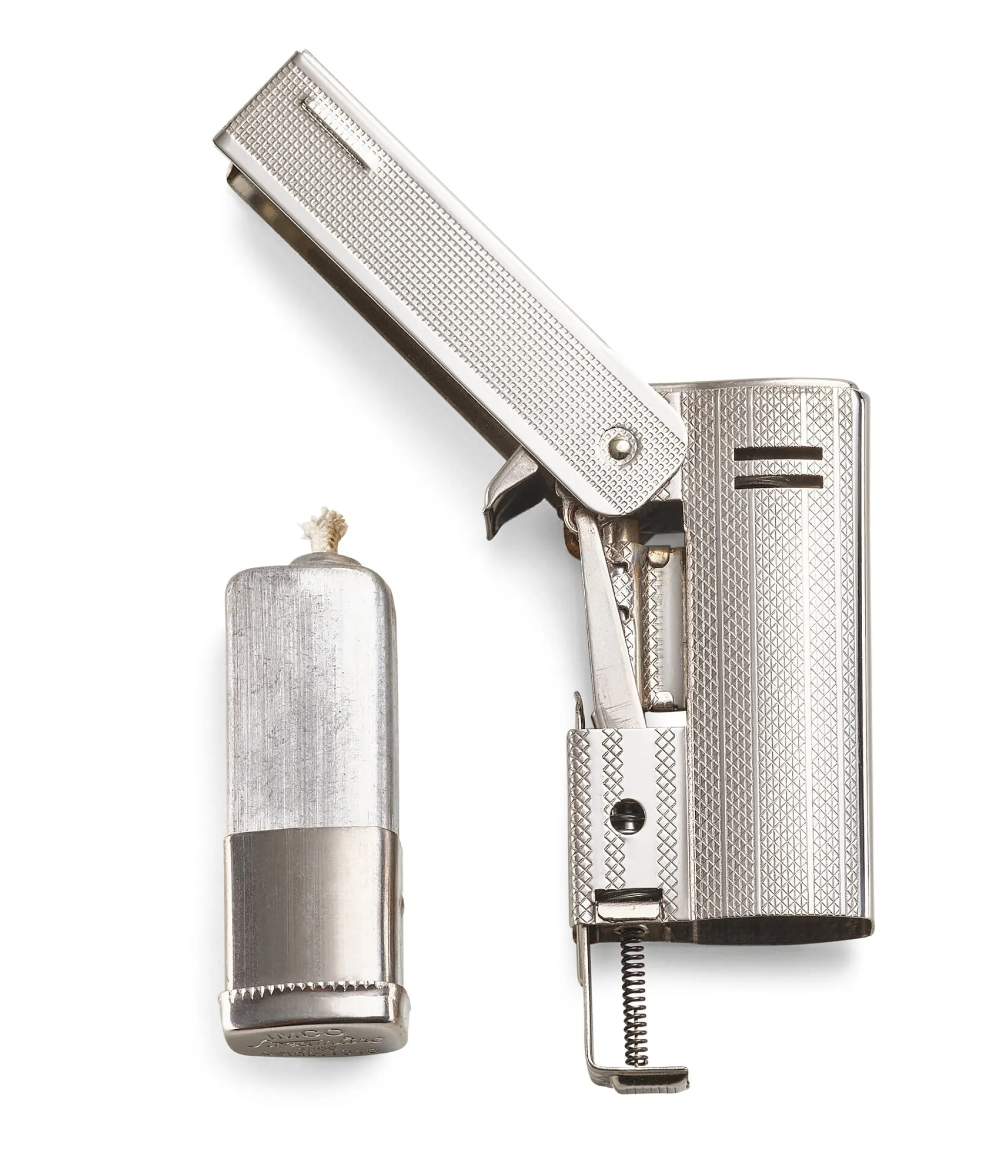 IMCO (ein Akronym für Julius Meister & Co) begann in Österreich 1918 mit der Fertigung von hochfunktionalen Feuerzeugen, deren Technik verblüffend einfach gehalten war. Den Überklassiker des Unternehmens, das IMCO Triplex, gibt es seit 1936, in den 1950er Jahren kam das von der gleichnamigen Designrichtung beeinflusste Modell Streamline hinzu. Beide sind robuste, einfach zu bedienende und preiswerte Low-Tech-Geräte, die bis zur Schließung der Produktion im Jahr 2012 hergestellt (und selbstredend auch von Manufactum angeboten wurden). Ein Jahr später erwarb der japanische Feuerzeughersteller Windmill die Namensrechte von IMCO und rekonstruierte die mittlerweile gänzlich verschlissenen Werkzeuge zu ihrer Herstellung. Seither produziert er die beiden Exil-Österreicher in seiner chinesischen Dependance.