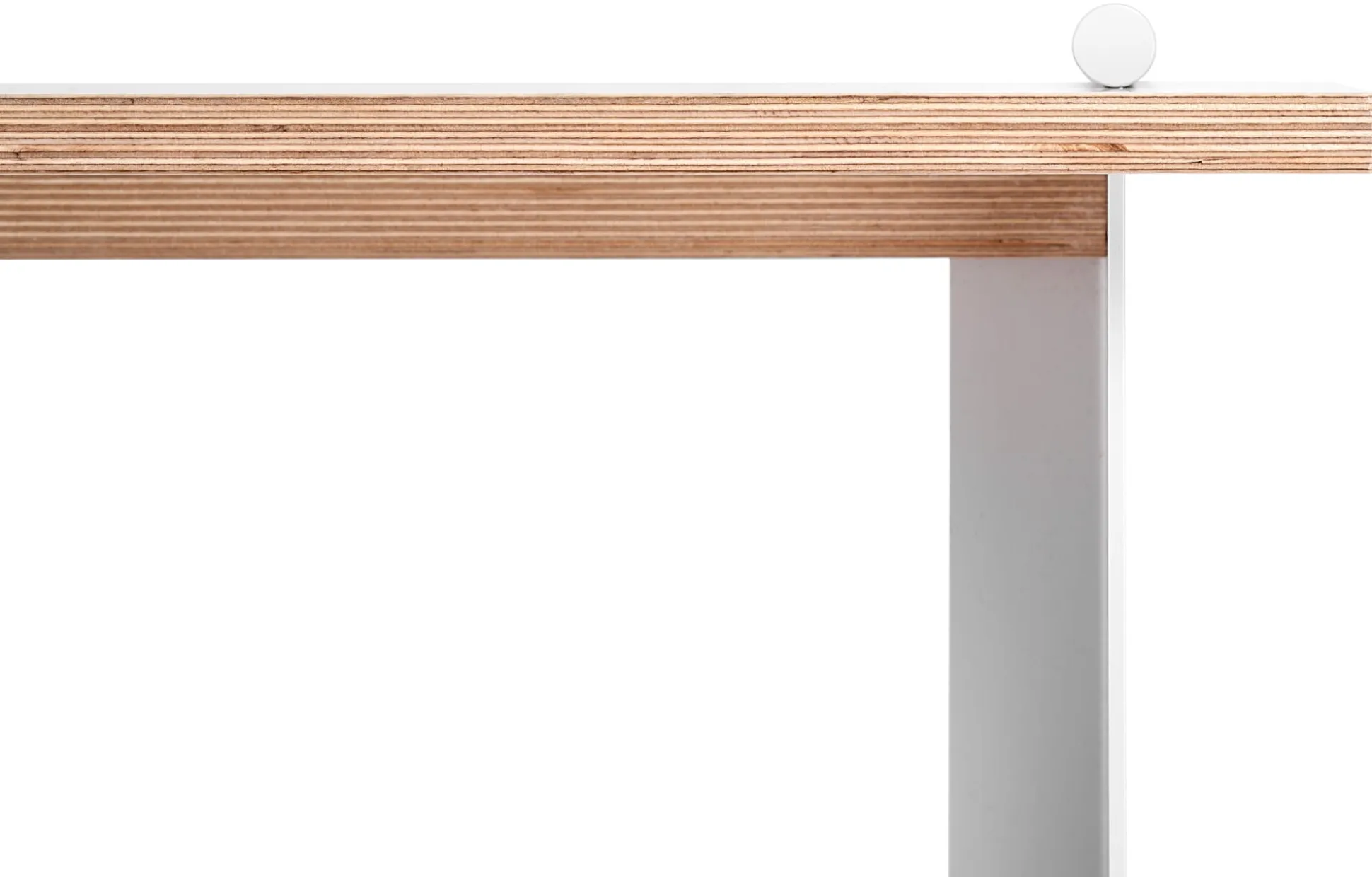 Material: Birke Multiplex (Herkunft: Osteuropa), 18 mm, beidseitig weiß melaminharzbeschichtet (bei den aus dem Karosseriebau stammenden Multiplexplatten sind Farb- und Strukturunterschiede sowie vereinzelt kleine Druckstellen möglich), Gestell: Stahlblech und Stahlrohr, pulverbeschichtet (Lichtgrau RAL 7035)