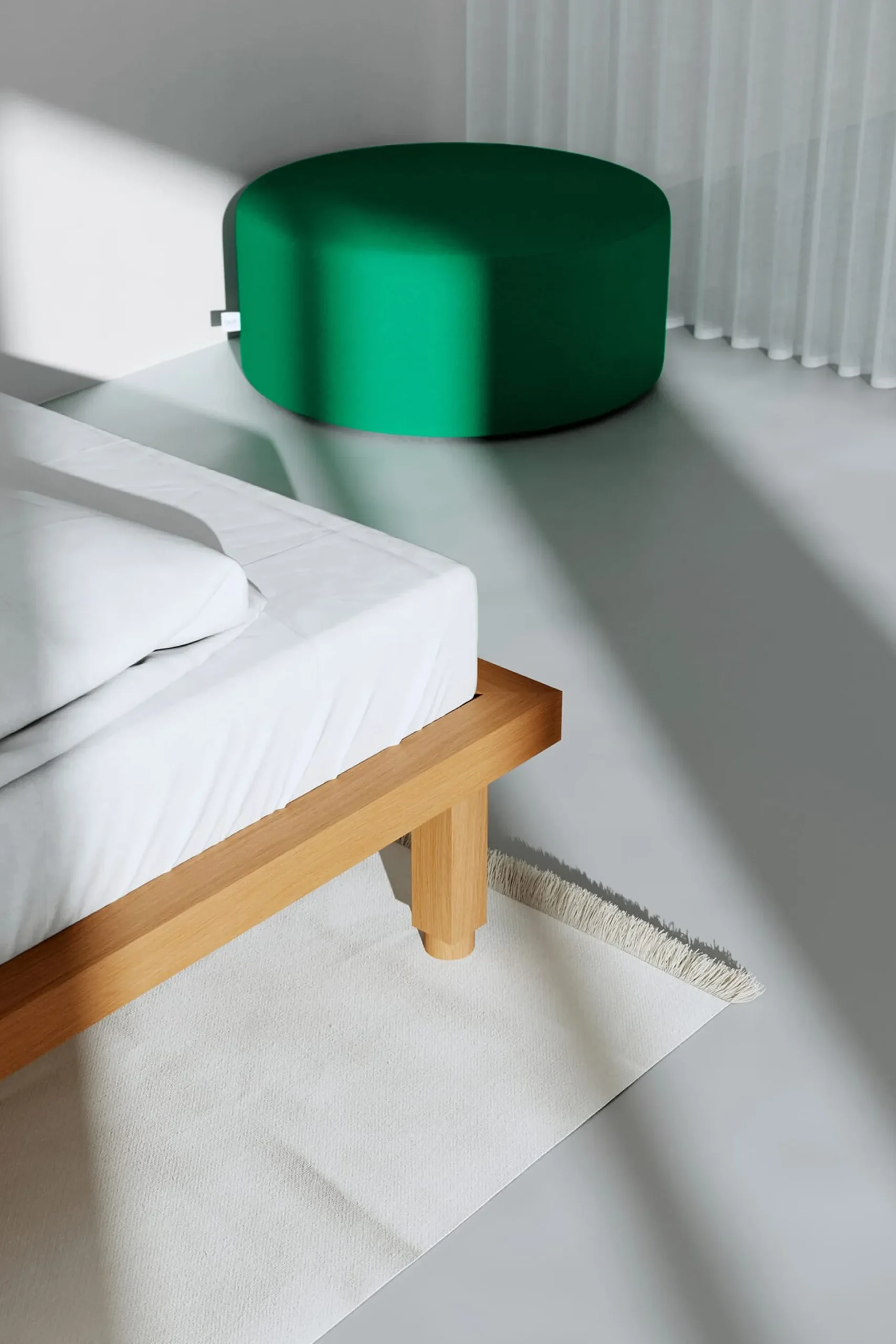 Das Bett KAYA ist der ideale Rückzugsort für innere Ruhe und ein zeitloses Statement für bewussten Konsum und langjährigen Gebrauch.