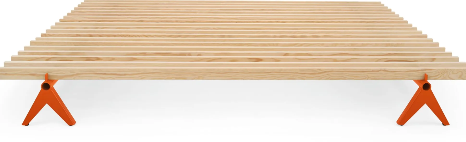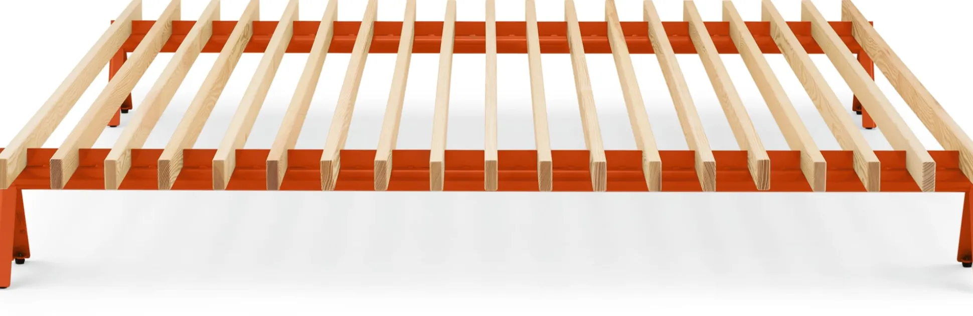 - Latten aus massivem Kiefernholz auf zwei stabilen, gezahnten Stahlträgern