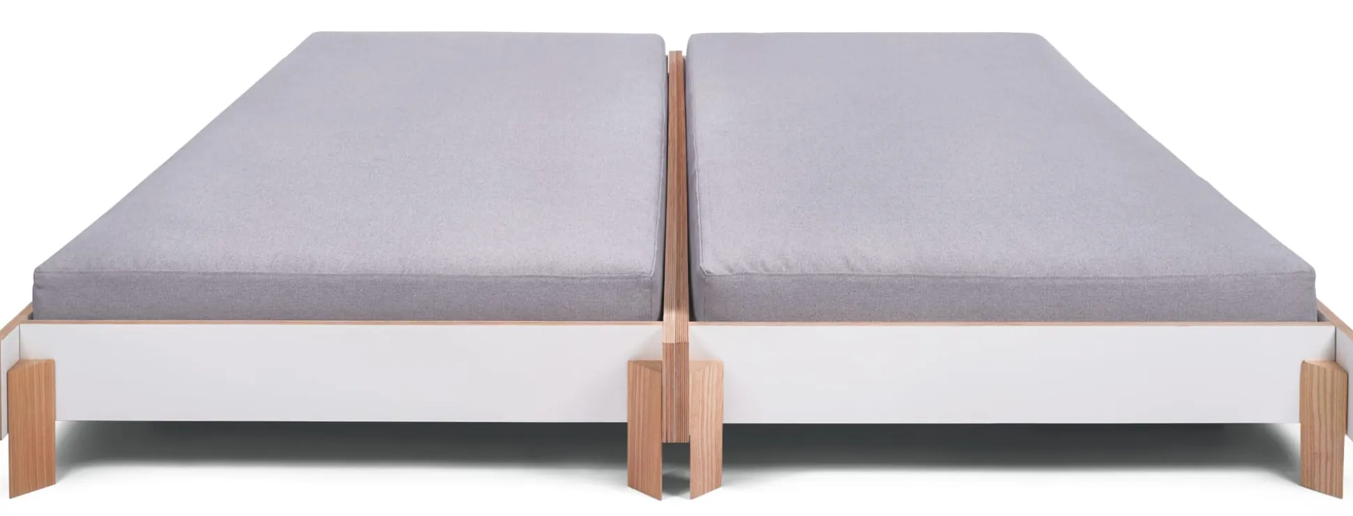 - Gestapelt als Kastenbett und Sofa, nebeneinander für breite Schlafgelegenheit