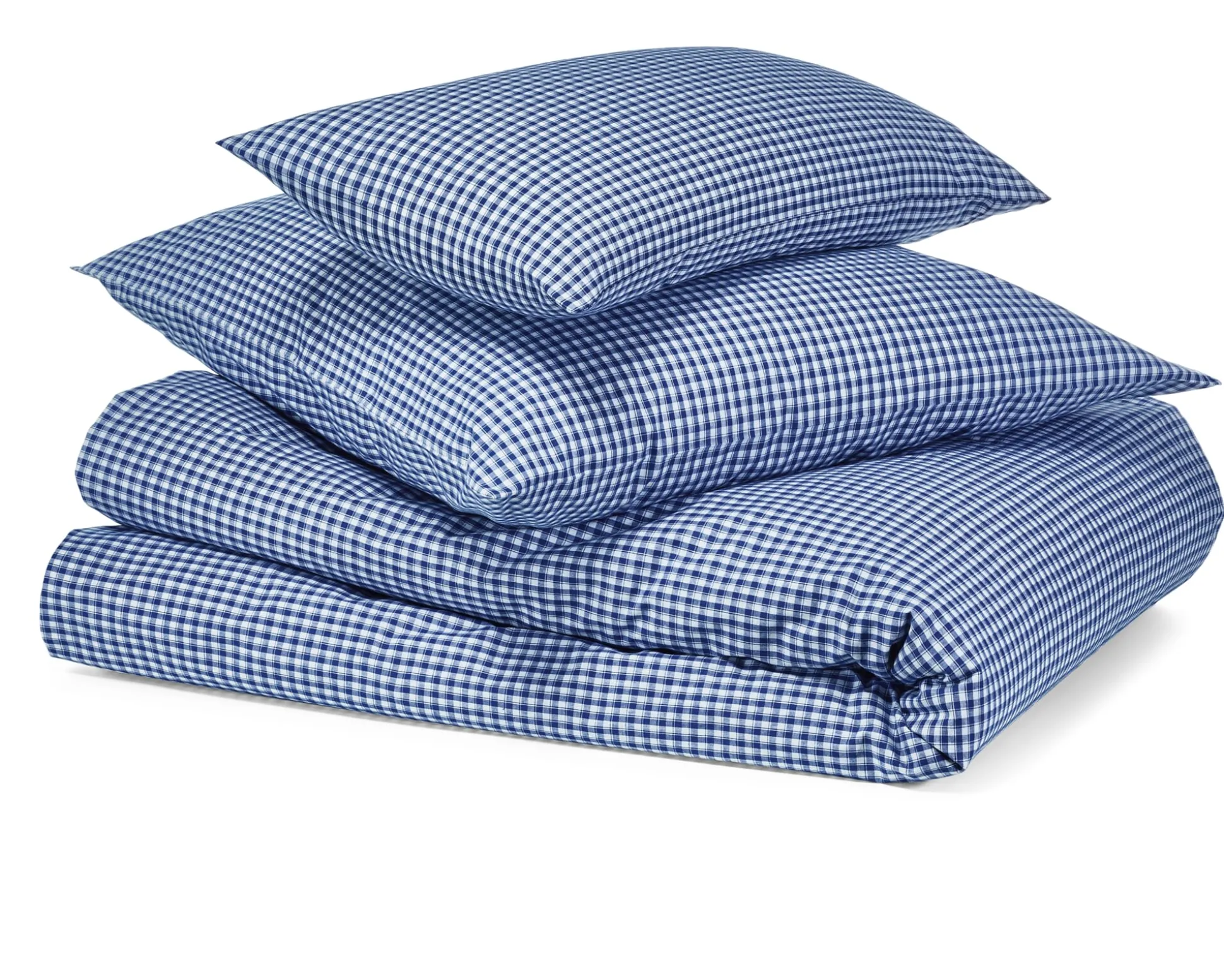 Baumwollbettwäsche. Strapazierbar, kariert gewebt und nicht bedruckt