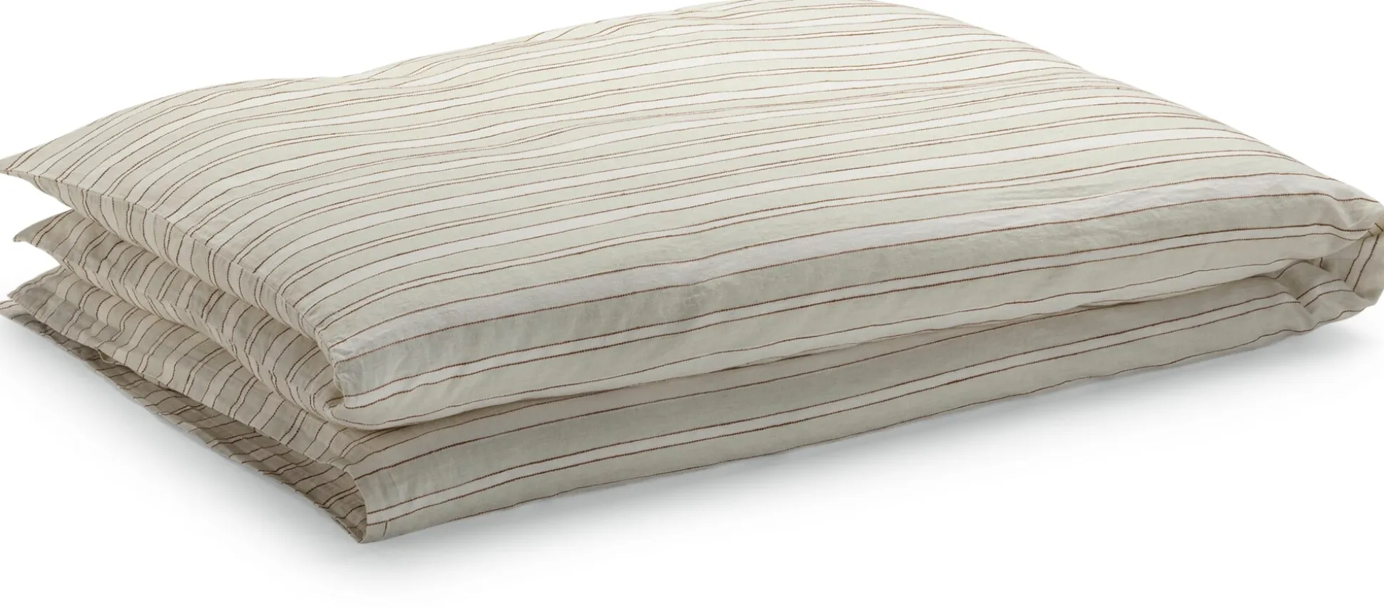 Besonders spannend ist aber der sichtbare Kontrast, denn die einzelnen Materialien zeigen sich in den verschiedenen Streifen: Aus reiner Baumwolle sind die hellen Streifen gewebt, für die naturfarbenen wird im Schuss naturbelassenes Leinen verwendet. Ein kräftigerer, roter Schussfaden aus Leinen setzt die Streifen kontrastierend voneinander ab, so entsteht ein zwar dezentes, dennoch lebendiges Streifenmuster, das sich leicht in jedes Schlafzimmer einfügt. Alle Bettbezüge sind mit Holzknöpfen versehen.