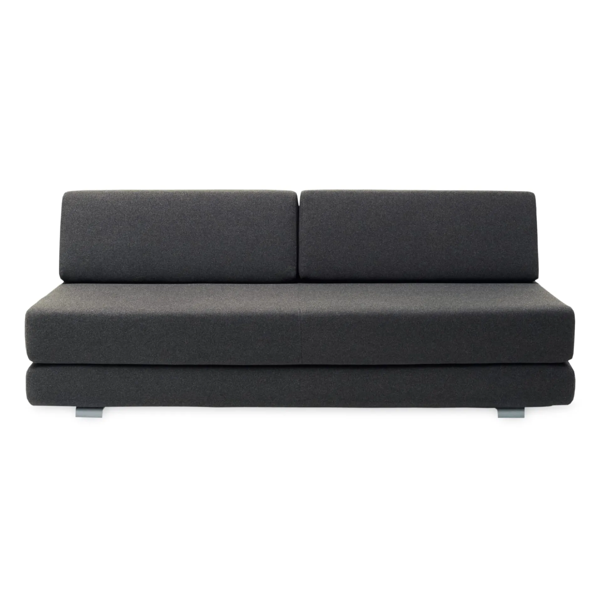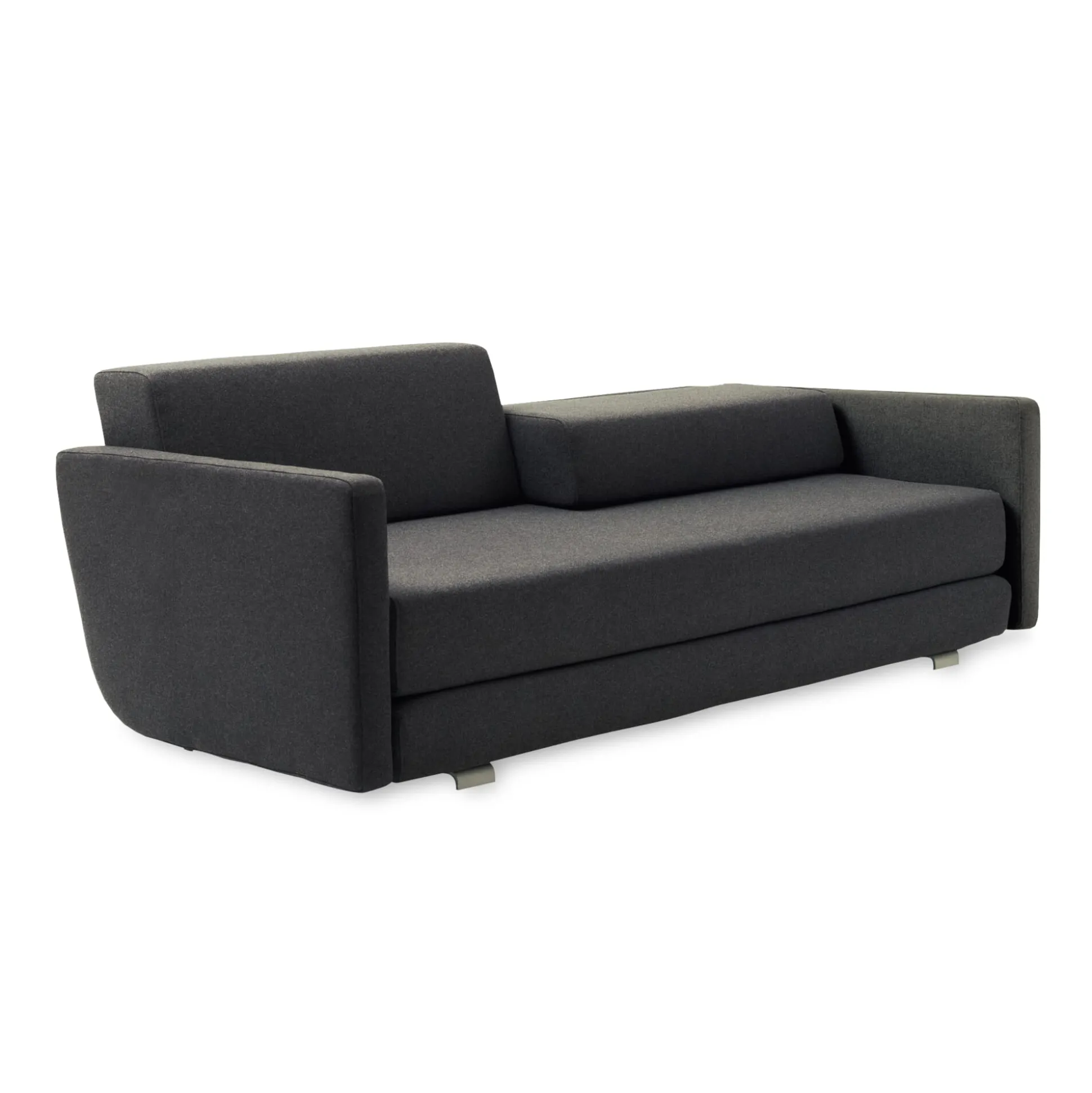 Formal reduziertes, geradliniges Sofa. Die Polsterelemente, Matratze und die beiden Rückenlehnpolster sind lose auf die Basis aufgestapelt. Somit kann LOUNGE vom dreisitzigen Sofa im Handumdrehen in ein Einzel- oder sogar ein Doppelbett verwandelt werden. Außerdem können die Sitztiefe und die komplette Höhe der Rückenlehnen durch Umgruppieren der Rückenpolster individuell verändert werden. Ein sympathischer Vorteil: Das ganze funktioniert ganz ohne aufwendige, verschleißanfällige oder kostenintensive Klappmechanik.