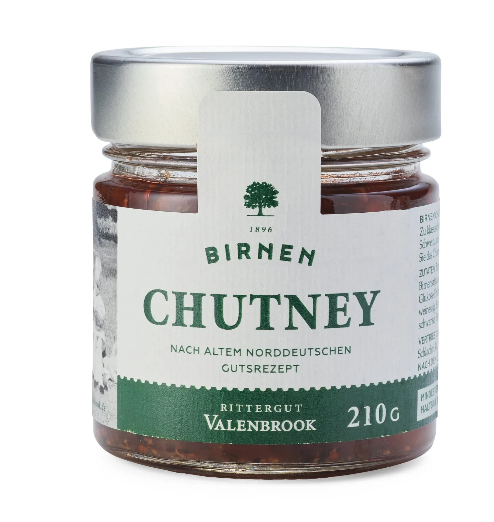 Dieses Chutney nach norddeutschem Gutsrezept verbindet die fruchtigen Komponenten der Birne mit der säuerlichen Note der Berberitze. Zugleich besitzt das herb-fruchtige Chutney eine pfeffrige Note. Es ist ein Genuss zu Wild, Räucherlachs und Käse, schmeckt aber auch zu gebratenem Schwein, Hühnchen oder Truthahn.