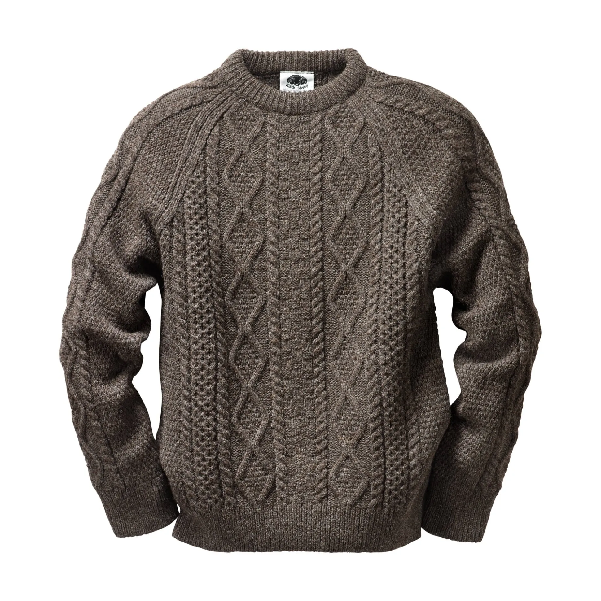 Der Geruch dieses Rundhalspullovers – von einigen durchaus als Duft bezeichnet – lässt sich nur beschreibend näher bringen: Das Gestrick riecht verhalten nach Lanolin, dem natürlichen Öl der Schafwolle, die auch für diesen Pullover ungebleicht und ungefärbt verwendet wird. Die Raglanärmel sind ohne Naht auf der Schulter gearbeitet. Sie begünstigen die angenehmen Trageeigenschaften des Pullovers – zusätzlich unterstreicht diese nahtlose Verarbeitung das charaktervolle, traditionelle Aranmuster, das so aus der Schulter bis in das Ärmelbündchen verläuft. Die Abschlüsse an Hals, Ärmeln und Rumpf sind in 1/1-Rippe gestrickt und bieten einen guten Körperschluss.