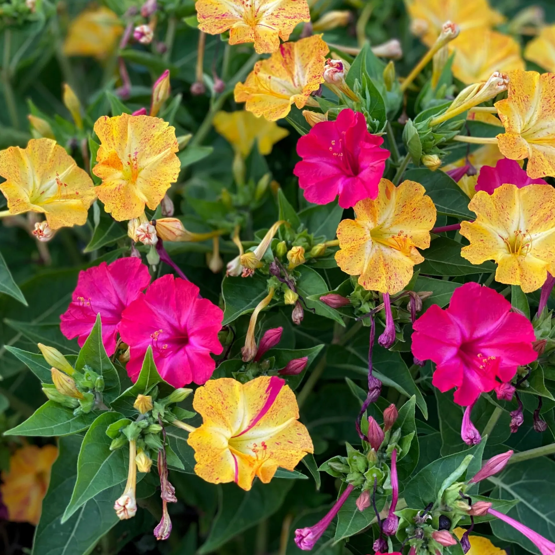 Die Wunderblume hat ihren Namen wegen ihrer verschiedenfarbigen Blüten, die an ein und derselben Pflanze in weißen, rosafarbenen, roten und gelben Tönen (und manchmal auch gestreift) auftauchen können. Sie stammt aus Mittelamerika, gelangt jedoch schon 1525 nach Europa. Die duftenden Blüten öffnen sich am späten Nachmittag, was ihr auch den Namen „Vieruhrblume“ einbrachte, und locken Nachtfalter zur Bestäubung an; die Blütezeit erstreckt sich von Juni bis Oktober. Die Pflanze wird 60–80 cm hoch; sie ist ausdauernd, muß aber frostfrei (wie Dahlien als Knolle) überwintert werden.
