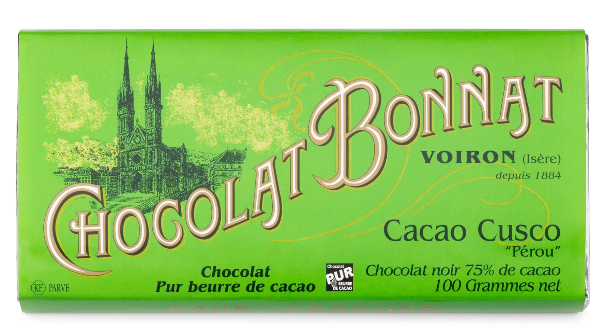 Die Bohnen für diese Schokolade gehören zur Sorte Cusco, einer der ältesten kultivierten Kakaosorten überhaupt. Sie kommen aus der peruanischen Amazonasregion, wo die Kakaobäume in der Nähe des Heiligen Tals der Inkas wachsen. In dieser Zartbitterschokolade kommen die Aromen der raren Sorte bestens zur Geltung. Sie hat einen delikaten Duft und verbindet feine Noten von Zuckerrohr mit einem starken Kakaogeschmack. Die Cacao-Cusco-Schokolade ist aus der Serie „Les Grand Crus d’Exception“, bei der die Anbauregionen noch enger gefasst sind als bei den klassischen Grand-Cru-Schokoladen von Bonnat.