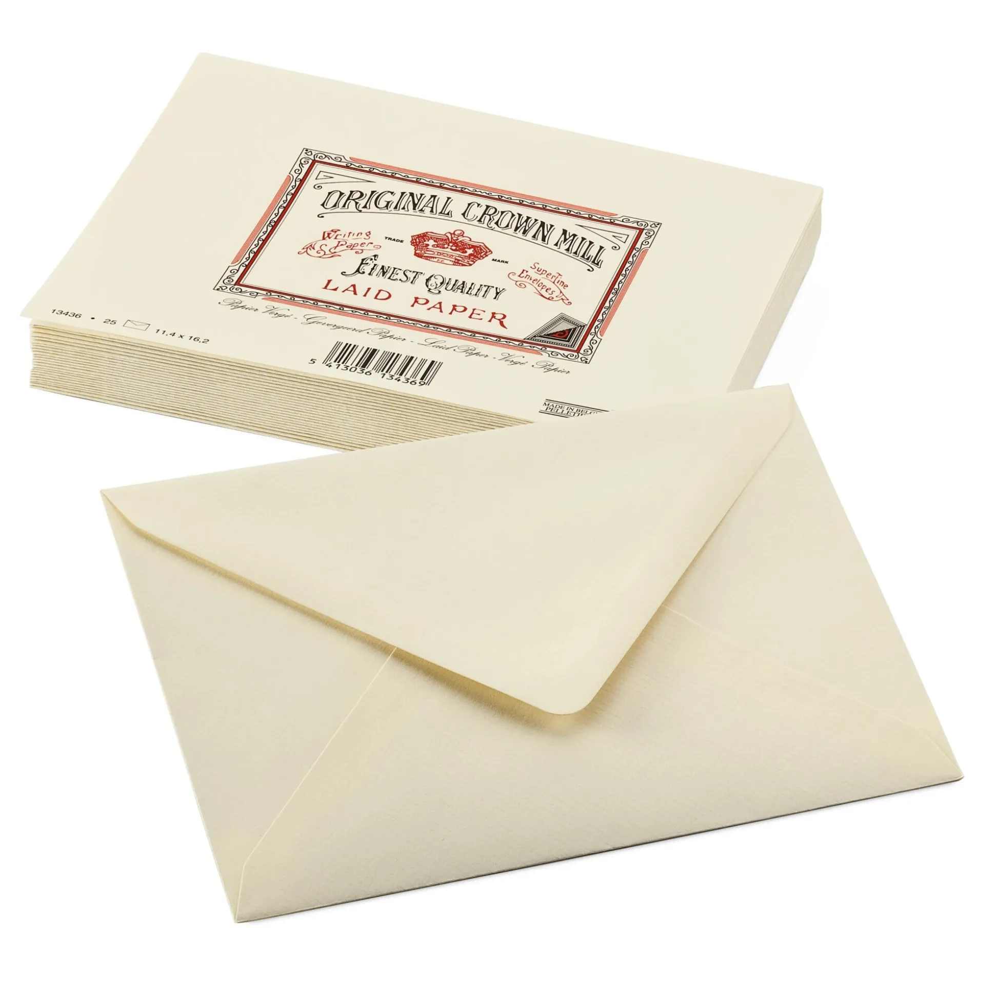 Crown Mill Vergé: Zellstoff, cremefarben, geprägt. 100 g/qm.