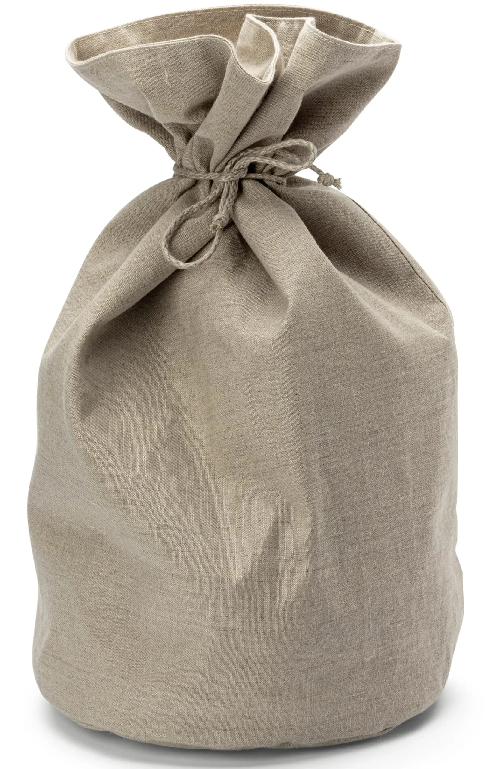 Als überaus praktisch erweist sich dieser Brotbeutelkorb aus zweierlei Gründen: Zum einen ist er aus einem festen Leinengewebe gearbeitet, das für den Gang zum Bäcker und die Aufbewahrung von Brot und Brötchen besonders geeignet ist. Leinen kann viel Feuchtigkeit aufnehmen und auch wieder abgeben, sodass es für ein perfektes Mikroklima im Brotbeutel sorgt und das Brot lange frisch und saftig hält. Da Flachs kein tierisches Eiweiß enthält, ist es weniger anfällig für Schimmelpilz. Die Leinenfasern haben außerdem eine sehr glatte Oberfläche, an der Schmutz und Bakterien kaum haften bleiben. Dadurch ist Leinen wenig schmutzanfällig und es lässt sich leicht reinigen. Es ist von Natur aus antistatisch und zieht somit ohnhin keinen Staub an.