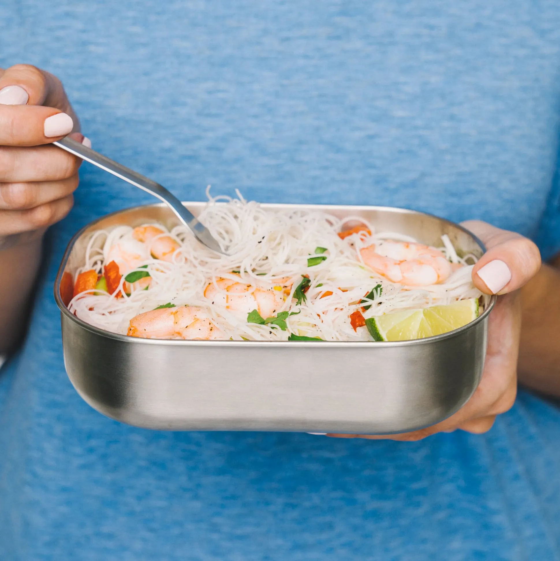 Aus Edelstahl, gut zu verschließen und mit verschiebbarer Unterteilung: APPETIT PLUS ist Vorratsdose, einfach zu transportierende Lunchbox und lässt sich auch als leichte Ofenform nutzen. Eine kleine Gabel gehört zum Lieferumfang. Für die Spülmaschine geeignet.
