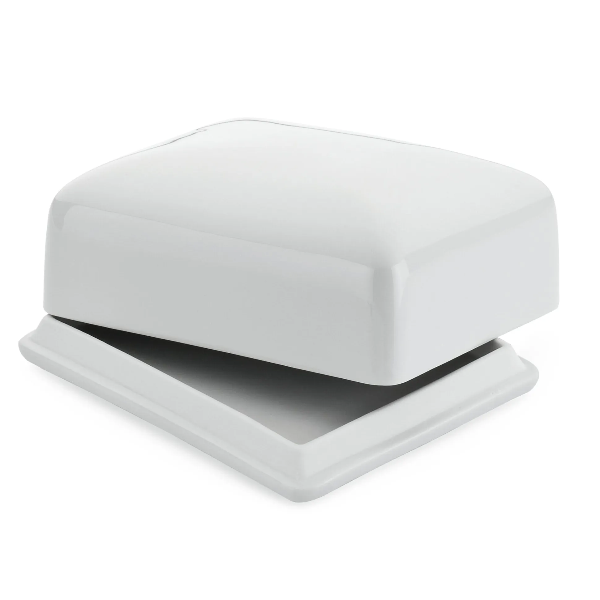 In dem oberfränkischen Städtchen Küps, entlang der Bayerischen Porzellanstraße gelegen, entstehen unsere Butterdosen. Lindner fertigt sie dort mit einem minimal zurückgesetzten Steg auf der Unterseite des Bodens, der ihre Handhabung erleichtert. Auf der Oberseite desselben fasst ein nach außen schräg ausgebildeter Steg den Deckel, der an der leicht rauen Oberfläche des an dieser Stelle nicht glasierten Porzellans guten Halt hat. Der Deckel ist bei beiden Dosen in gewölbter Form mit gerundeten Kanten gearbeitet.