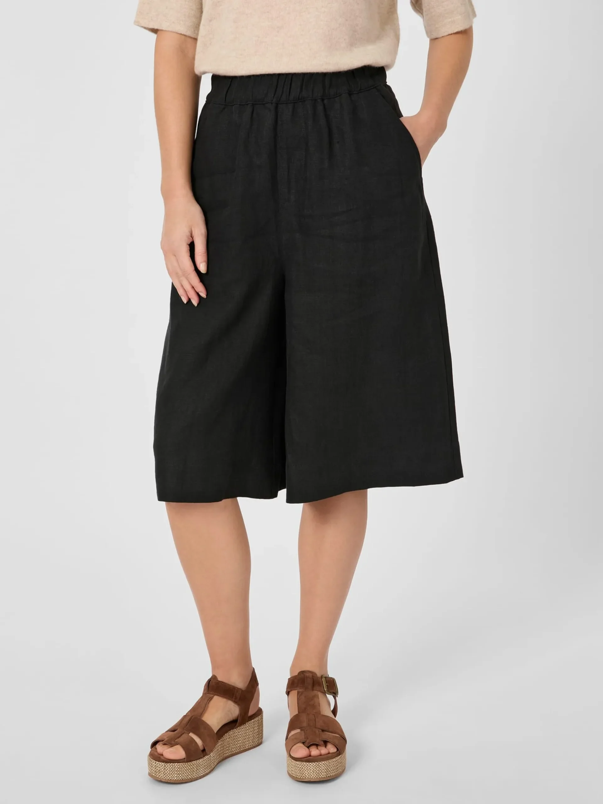 Diese bequeme Bermudahose überzeugt in Material und Schnitt. Knowledge Cotton Apparel konfektioniert sie aus kontrolliert biologisch angebautem Leinen. Das leichte und strapazierbare Gewebe zeigt materialtypisch eine leicht unregelmäßige Struktur und eine schöne Melangeoptik. Tragefreundlich ist es noch dazu, denn da die Flachfaser viel Feuchtigkeit aufnehmen und schnell wieder ableiten kann, sind Leinenstoffe besonders atmungsaktiv und liegen leicht kühlend auf der Haut. Gearbeitet ist die verschlusslose Bermudahose in legerer Passform, mit sehr weitem Bein und elastischem Bund. Zwei Seitentaschen bieten Platz für Kleinteile des täglichen Bedarfs.
