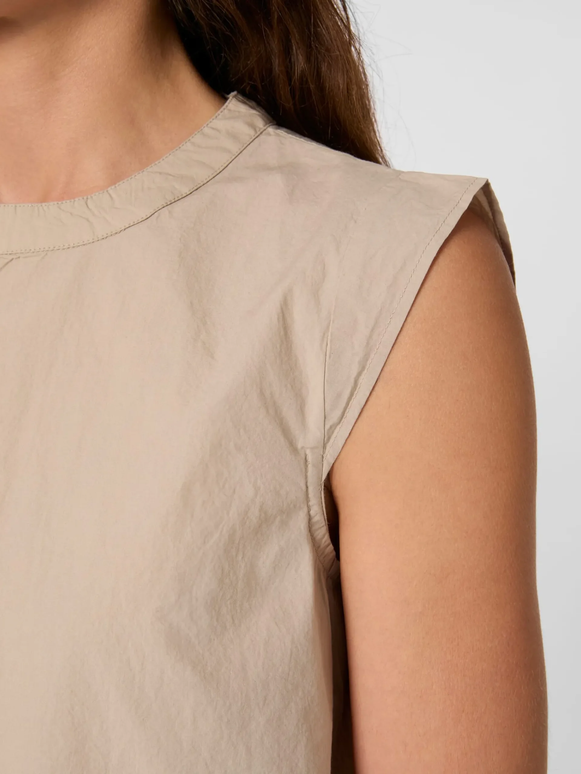 Dieses luftige Blusentop ist perfekt für warme Sommertage und lässt Spielraum für vielseitige Kombinationsmöglichkeiten – ob elegant oder leger. Das verwendete Material, eine feine Popeline aus hautsympathischer, kontrolliert biologisch angebauter Baumwolle, sorgt für ein rundum gutes Tragegefühl. Gearbeitet ist das Top in lockerer, bequemer Passform mit Rundhalsausschnitt und geradem Saum. Die kurzen Flügelärmel und der Schlüsselloch-Ausschnitt im Rücken mit Nackenknopf aus Perlmutt verleihen ihm eine feminine, leicht verspielte Note.