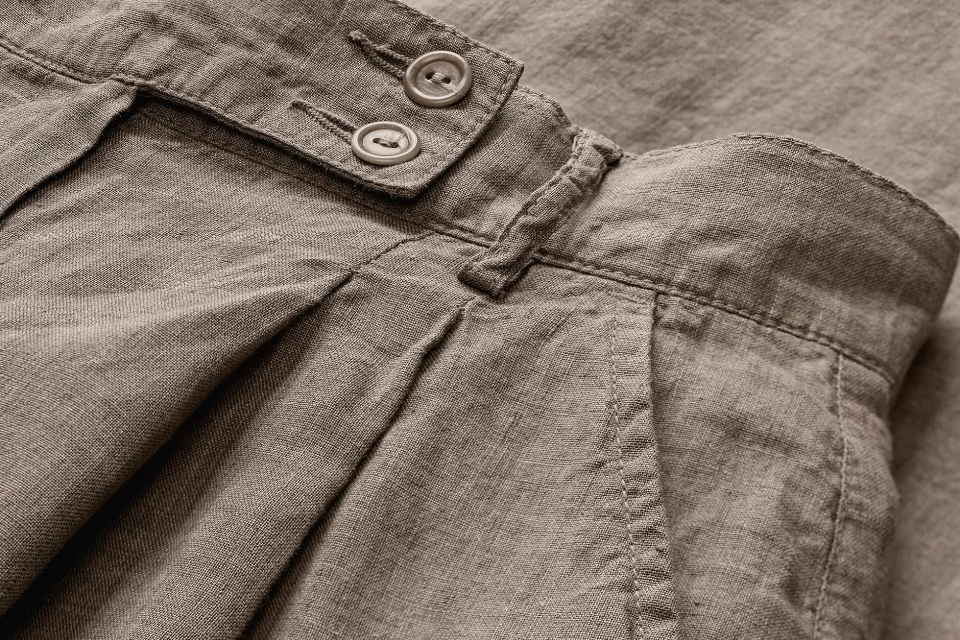 100% Leinen. Steinnussknöpfe. Kunststoffreißverschluss. Hergestellt in Tunesien. Innenbeinlänge bei Größe 38 = 81,5 cm.