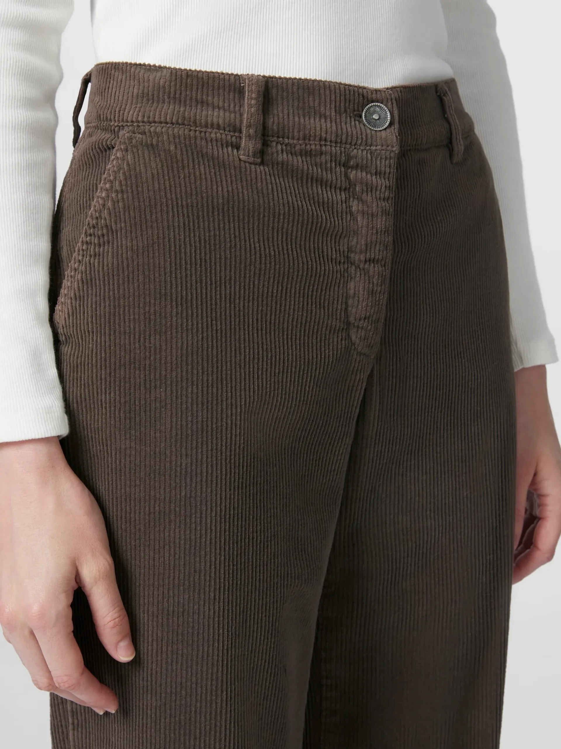 Mit seinen samtartigen Längsrippen hat Cord nicht nur eine markante Optik und Struktur, er ist auch sehr robust und langlebig. Diese Hose lassen wir aus einem mittelbreiten Cord aus hautsympathischer, kontrolliert biologisch angebauter Baumwolle konfektionieren. Hinzu kommt eine minimale Elastanbeimengung für mehr Elastizität und Formtreue. Das Cordgewebe ist vorgewaschen und bekommt so einen leichten Used Look, was zusammen mit der bequemen Passform mit geradem, weit geschnittenem Bein für einen lässigen Auftritt sorgt. Die Cordhose ist mit zwei Eingrifftaschen und zwei großen aufgesetzten Gesäßtaschen ausgestattet, sie wird mit Reißverschluss und Knopf geschlossen.
