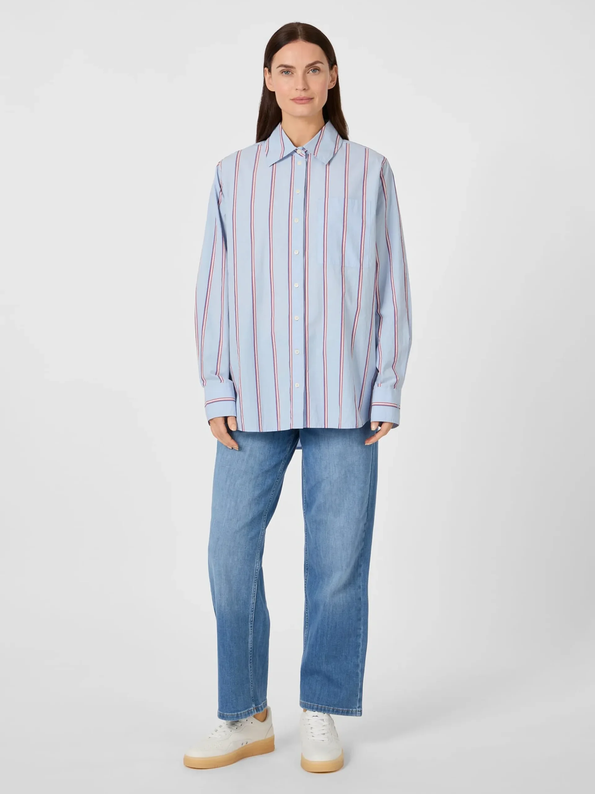 Die feinen, mehrfarbigen Streifen verleihen dieser Hemdbluse einen frischen, lebendigen Look. Armedangels fertigt sie aus kontrolliert biologisch angebauter Baumwolle, was sie hautsympathisch und atmungsaktiv macht. Die lockere Passform und eine Quetschfalte unter der Schulterpasse sorgen für einen bequemen, lässigen Sitz und viel Bewegungsfreiheit. Ausgestattet ist die Bluse mit einer mustergetreu aufgesetzten Brusttasche und geknöpften Manschetten. Der Saum ist gerundet und hinten länger als vorn.
