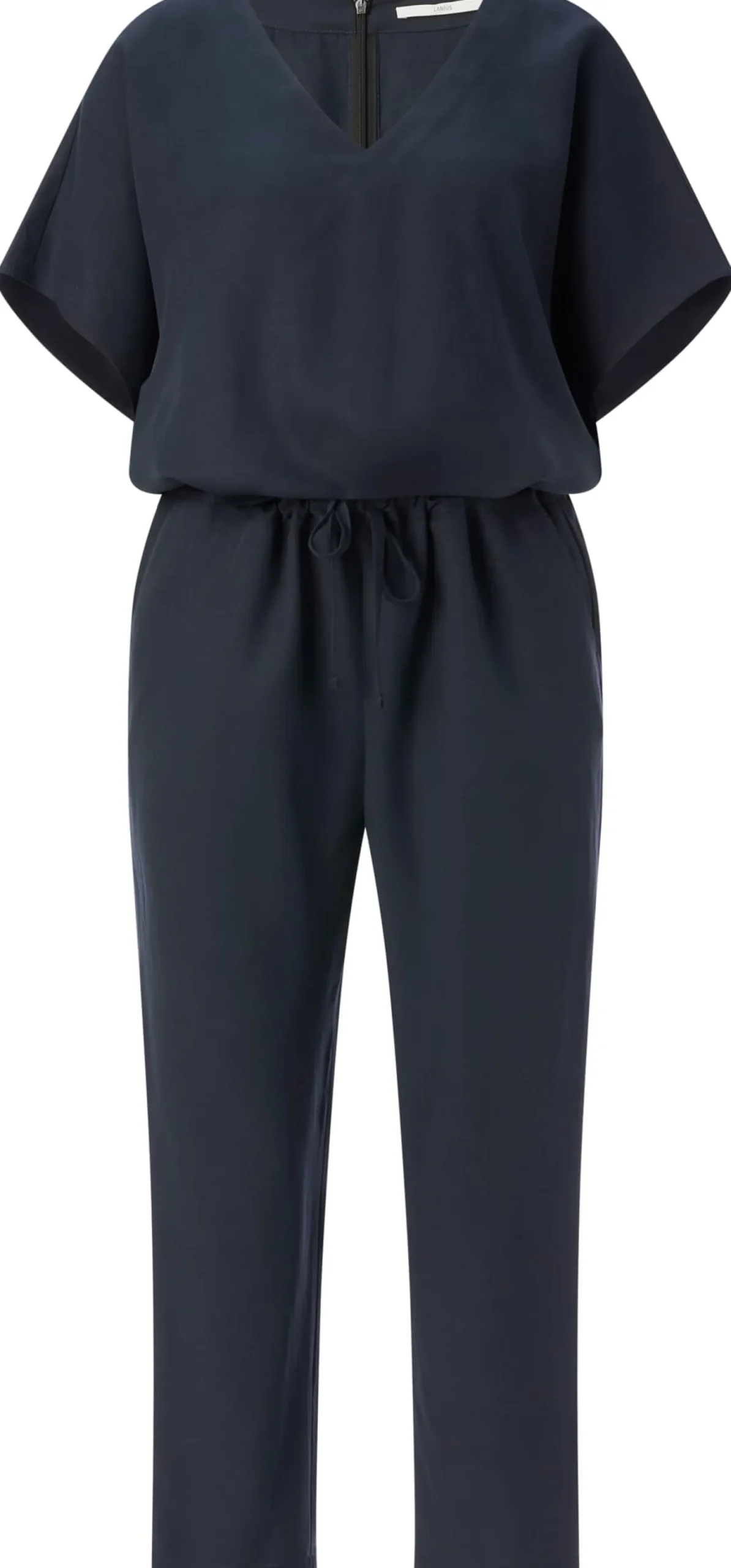 Lanius fertigt diesen Jumpsuit in lockerer Passform mit überschnittenen Schultern. Das sorgt für einen lässigen, bequemen Sitz, der die Figur sanft umspielt. Der Stoff besteht zu einem Gutteil aus Lyocell (TENCEL™), einer regenerativen Zellulosefaser, die aus Holz gewonnen wird, das aus kontrollierten Quellen stammt. Dank dieser hautsympathischen und atmungsaktiven Faser liegt das Gewebe angenehm glatt und schmiegsam auf der Haut und hat einen weich fließenden Fall. Der Leinen-Anteil begünstigt die atmungsaktiven Eigenschaften noch und verleiht dem Stoff einen markanten, sichtbaren Köpergrat. Gearbeitet ist der Jumpsuit mit V-Ausschnitt, zwei Seitentaschen und nahtverdecktem Reißverschluss im Rücken. Das Bindeband im Tunnelzug erlaubt eine Weitenanpassung auf Taillenhöhe.