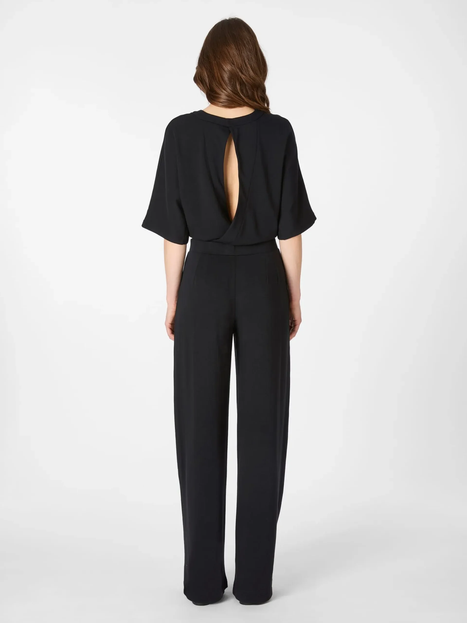 Dieser Jumpsuit ist die perfekte Symbiose aus zeitloser Eleganz und lässigem Chic. Der bequeme Schnitt mit leger sitzendem Oberteil mit weiten Ärmeln und Brustabnähern, einem elastischen Taillenband und weit geschnittenem Bein formt eine schmeichelhafte, feminine Silhouette, während der weich fließende Jersey sanft die Figur umspielt. Lanius fertigt ihn aus Lyocell (TENCEL™) und kontrolliert biologisch angebauter Baumwolle, was ihn weich, hautsympathisch und atmungsaktiv macht und für viel Bewegungsfreiheit sorgt. Ein kleiner Anteil Elastan verleiht dem Gestrick noch mehr Elastizität und Formtreue. Ein raffiniertes Detail ist der Ausschnitt im Rücken, der mit zwei kleinen Druckknöpfen geschlossen wird.