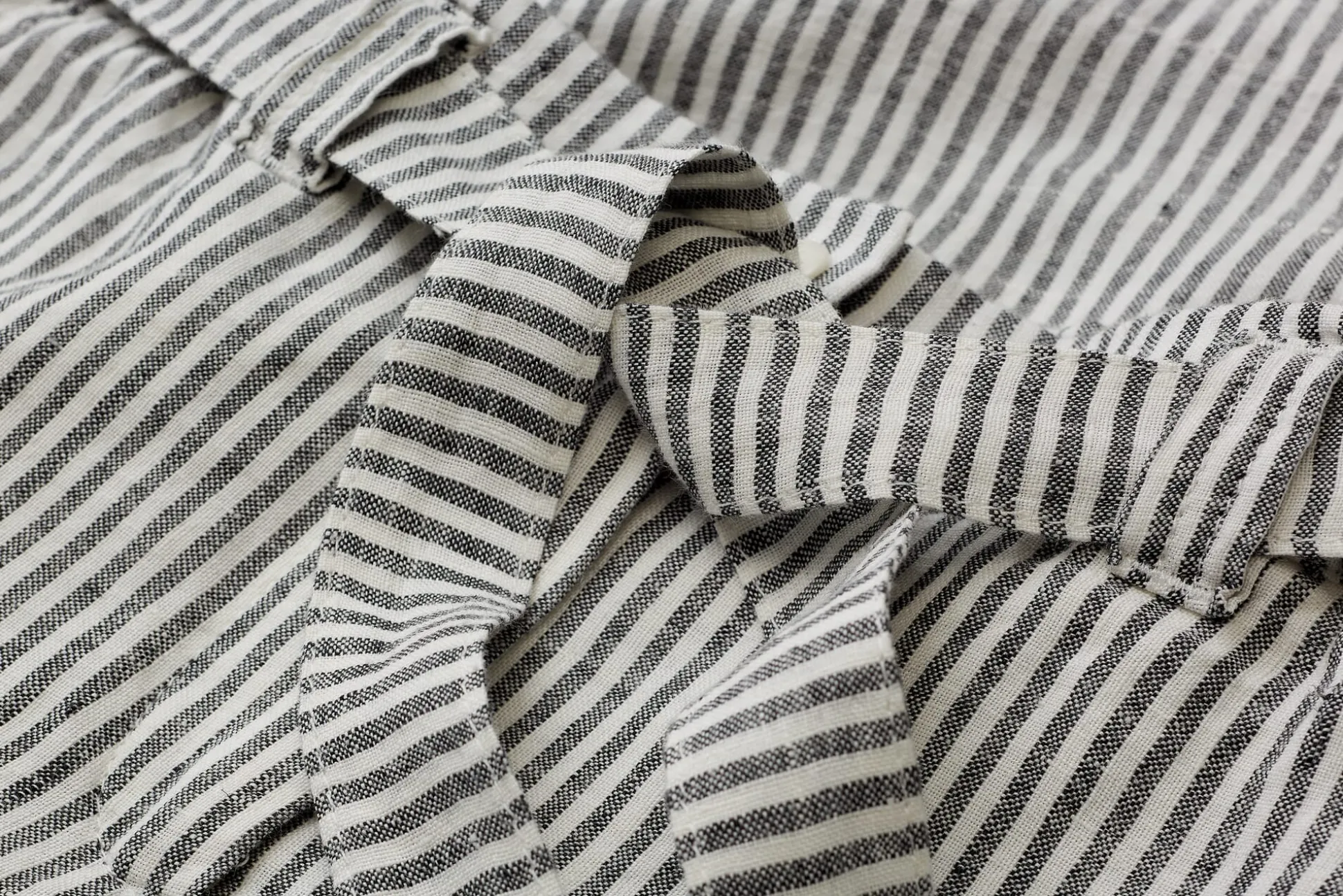 Luftige Shorts aus reinem Leinen, lässig im Stil, mit eleganten Längsstreifen – die ideale Begleiterin für den Sommer. Leinen ist das Material der Wahl für die warme Jahreszeit, denn es ist leicht und besonders atmungsaktiv. Wir haben uns hier bewusst für europäisches Leinen entschieden: Der Stoff stammt aus Frankreich, der Flachs dafür wird in den Niederlanden angebaut. Die Shorts sind mit einem integriertem Gürtel aus Oberstoff gearbeitet und werden mittels Reißverschluss und Knopf geschlossen. Für mehr Bewegungsfreiheit sorgt der Teilgummibund hinten. In den zwei Seitentaschen und den zwei aufgesetzten Gesäßtaschen lassen sich Kleinteile des täglichen Bedarfs griffbereit verstauen.