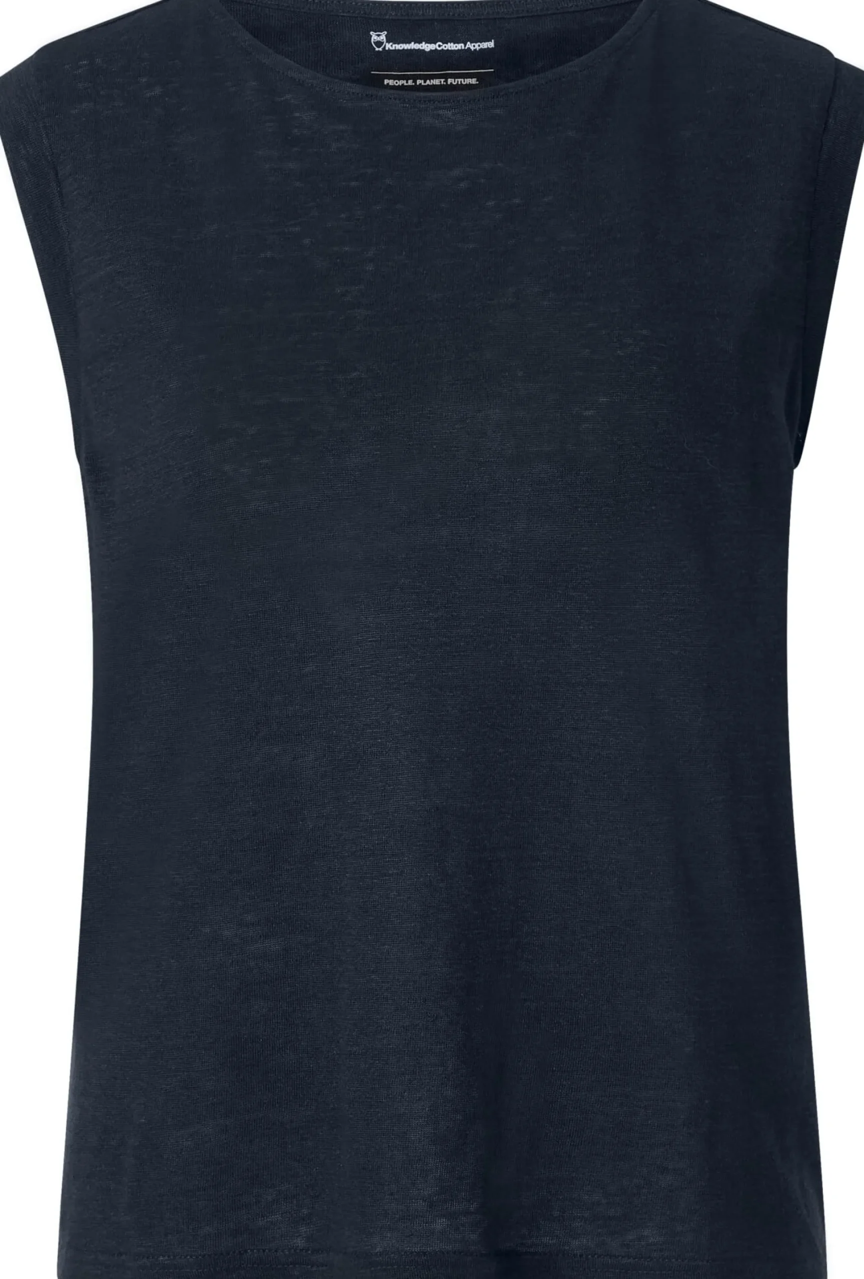 Für dieses sommerlich-leichte, luftige Top fertigt Knowledge Cotton Apparel einem weich fallenden Jersey aus reinem Leinen. Besonders ist hier, dass das Leinen aus kontrolliert biologischem Anbau stammt. Leinen ist die perfekte Materialwahl für die warme Jahreszeit. Es ist hautsympathisch, atmungsaktiv und liegt angenehm kühlend auf der Haut und bringt sie daher selbst bei hohen Temperaturen nicht so schnell ins Schwitzen. Materialtypisch erzeugen die Leinengarne einen schönen Melangeeffekt, was dem Top einen lässigen Charakter verleiht. Feine Rippenstrickabschlüsse an den Ärmelöffnungen runden das Design ab.