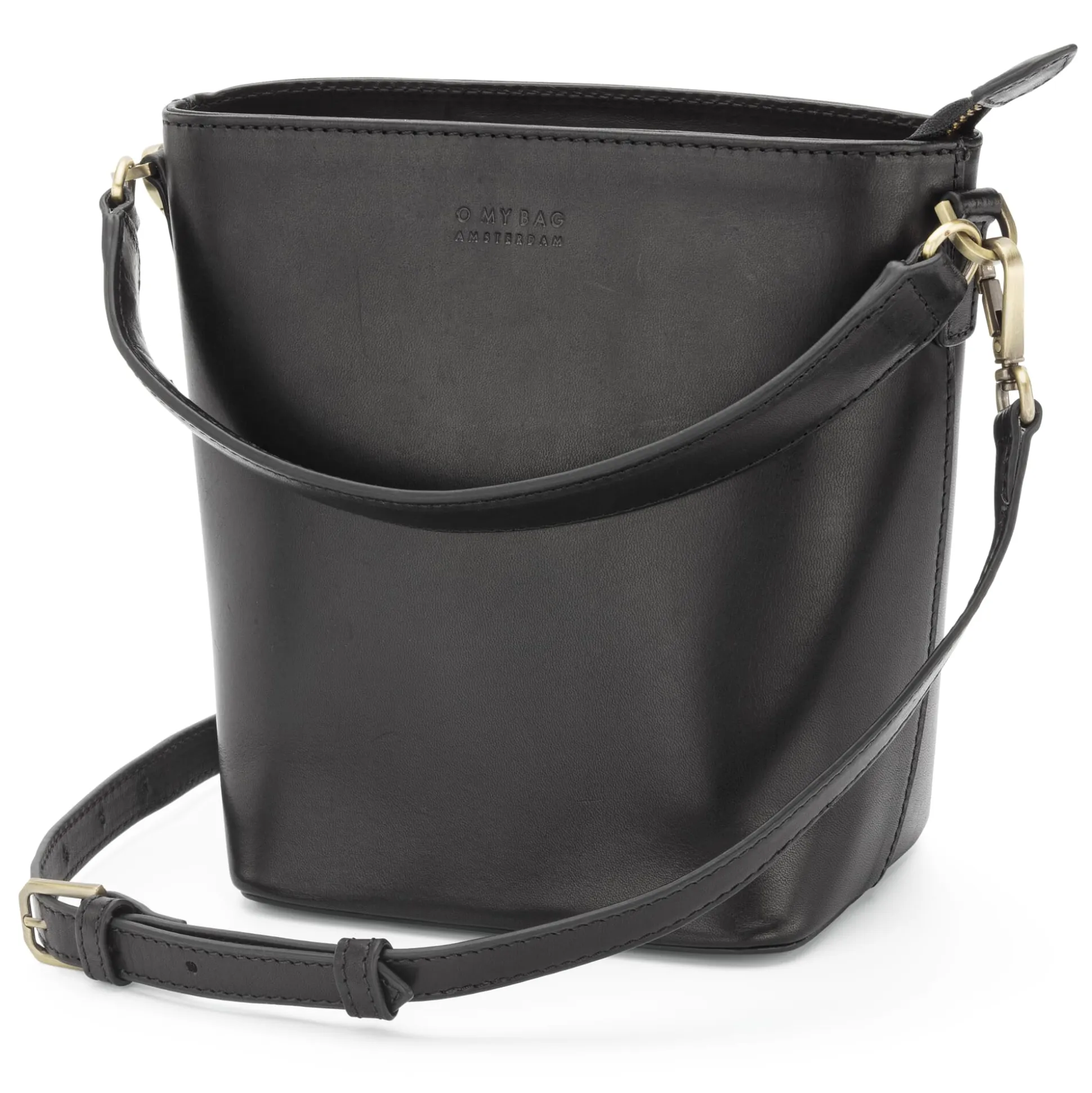Eine sportlich-elegante wie schlichte Schultertasche im Stil einer Bucket Bag, die je nach kombinierter Bekleidung zu verschiedensten Anlässen eine gute Figur macht. Besonders praktisch: Die Tasche ist mit zwei abnehmbaren Riemen versehen – einem langen Schulterriemen und einem kurzen, gedoppelten Trageriemen, sodass sie wie eine Handtasche getragen werden kann. Aus kräftigem Rindleder mit einem großflächigen, eckigen Boden gemacht, hat sie stabilen Stand und bewahrt ihre Form, wenn sie abgelegt wird. So bietet sie stets guten Einblick in ihr geräumiges Hauptfach mit einem seitlichen Reißverschluss- und einem Steckfach. Die Tasche verjüngt sich nach oben und schließt mit einem Reißverschluss. Gefüttert ist sie mit dem für O My Bag charakteristischen blau-weiß gestreiften Baumwollköper.