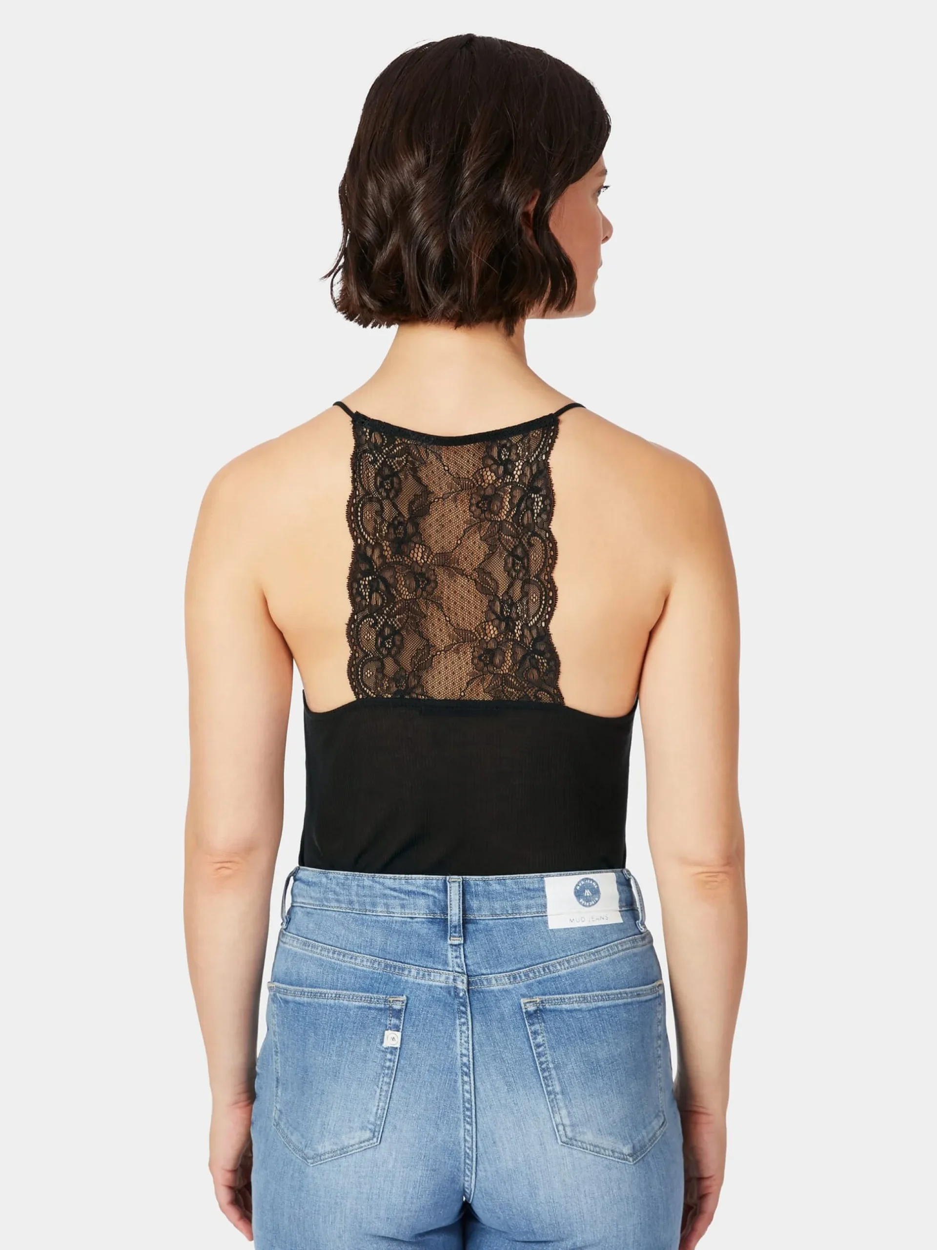 Dieses leichte (und leicht transparente) Spitzentop fühlt sich weich an und schmiegt sich sanft an die Haut. Lanius fertigt es aus Lyocell (TENCEL™), einer regenerativen Zellulosefaser. Für die Spitzenbesätze wird hautsympathische Baumwolle verwendet. Das Top selbst ist aus filigranem Feinripp gearbeitet, die zarte Spitze mit floralen Mustern am Dekolleté und im Rückenbereich verstärkt die feminine Note – ein Eindruck, der von den schmalen Spaghettiträgern noch unterstrichen wird. Das Top ist perfekt für besondere Anlässe oder um einem Alltagsoutfit einen Hauch von Eleganz zu verleihen.