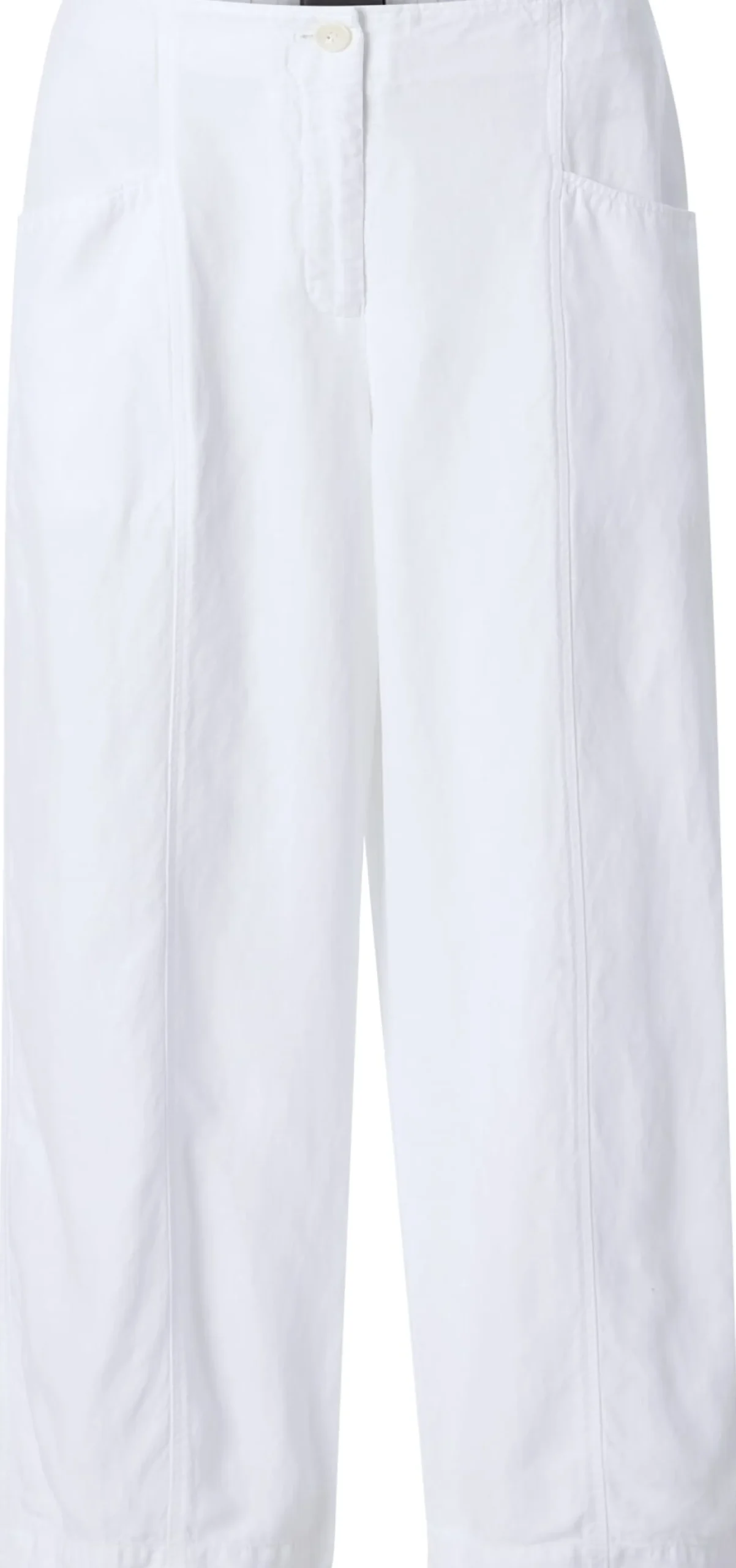 67% Lyocell, 33% Leinen. Steinnussknopf, Metallreißverschluss. Teilgummibund. Hergestellt in Tschechien. Innenbeinlänge bei Größe 2 (40/42) = 66,5 cm.