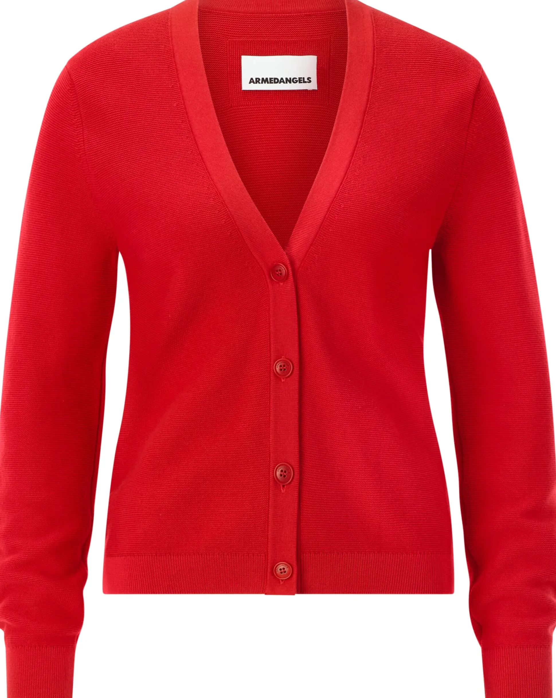 Diesen klassischen Cardigan fertigt Armedangels aus reiner, kontrolliert biologisch angebauter Baumwolle. Das feine, glatte Gestrick ist hautsympathisch, liegt angenehm leicht auf der Haut und trägt nicht auf. Gearbeitet ist der Cardigan in geradlinigem, hüftlangen Schnitt, mit feinen Rippenstrickbündchen an Ärmeln und Rumpf. Farblich abgestimmte Steinnussknöpfe runden das Design ab. Alles in allem: ein vielseitig kombinierbares Basisstück für jede Jahreszeit.