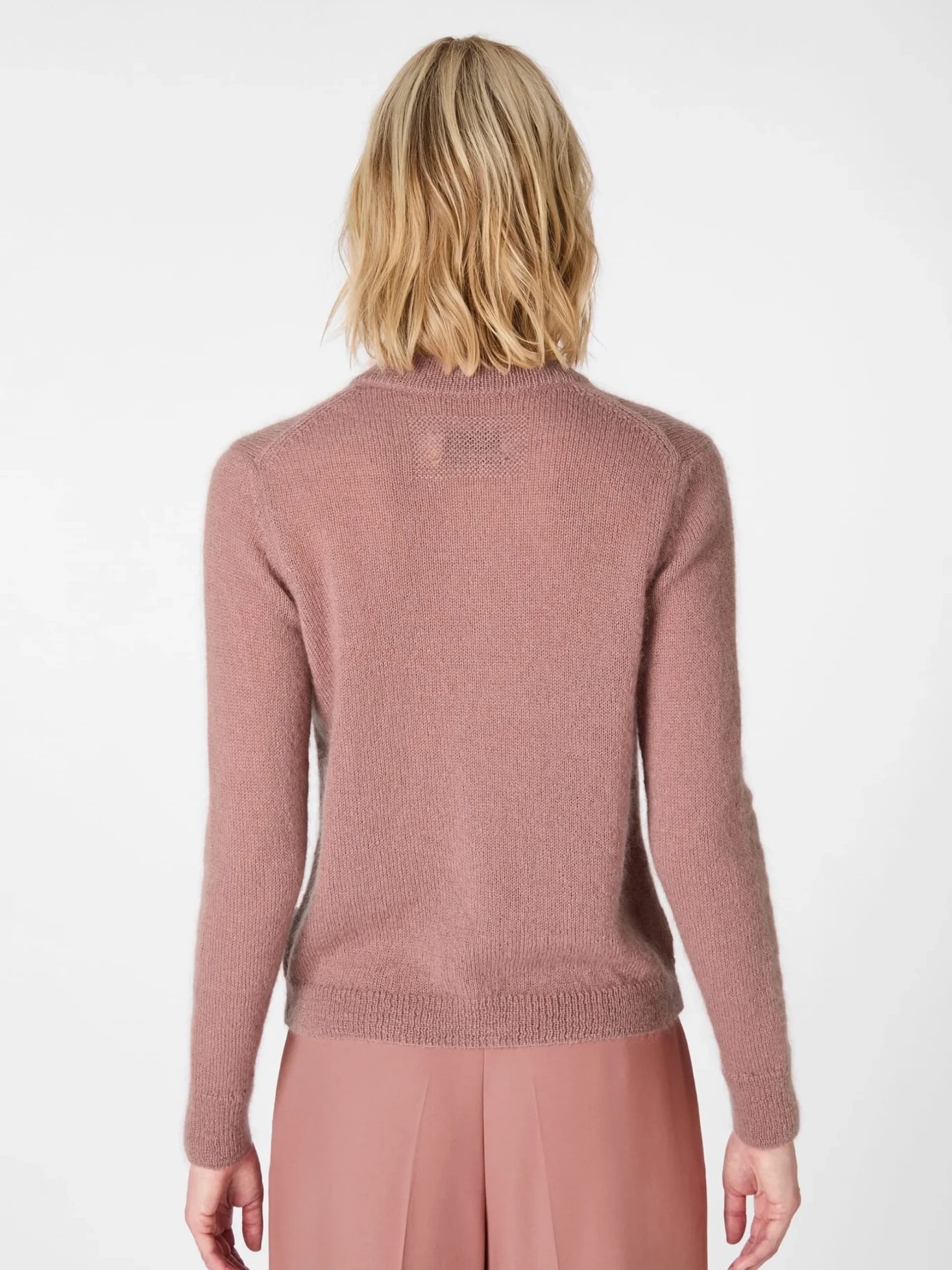 Die Materialkombination, die in dieser schönen Strickjacke verwendet wird, ist selten zu finden: Wolle und Mohair, beide Materialien stammen aus kontrolliert biologischer Tierhaltung. Sie werden hier zu einem leichten und unnachahmlich weichen Gestrick verarbeitet, das nicht nur besonders gut wärmt, sondern auch temperaturausgleichend und atmungsaktiv ist. Kurzum: In dieser Strickjacke werden Sie sich rundum wohlfühlen, selbst wenn die Temperaturen einmal unverhofft ansteigen sollten. Gearbeitet ist die Strickjacke mit Rippenstrickbündchen an Hals, Ärmeln und Rumpf. Markante Papierknöpfe und ein Strickdetail im Nacken runden das Design ab.