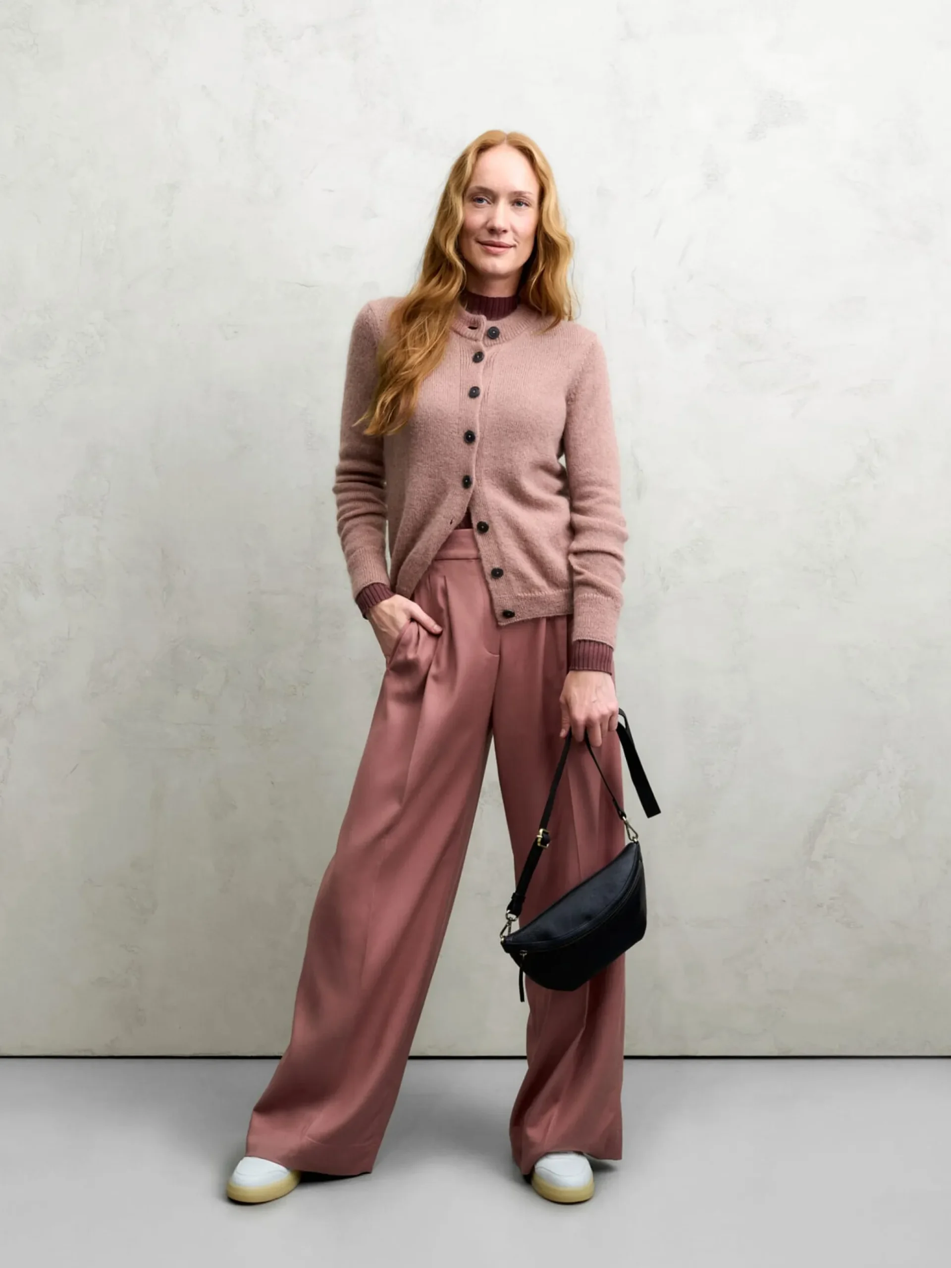 64% Wolle, 36% Mohair. Papierknöpfe. Hergestellt in der Türkei. Rückenlänge bei Größe M = 57 cm.