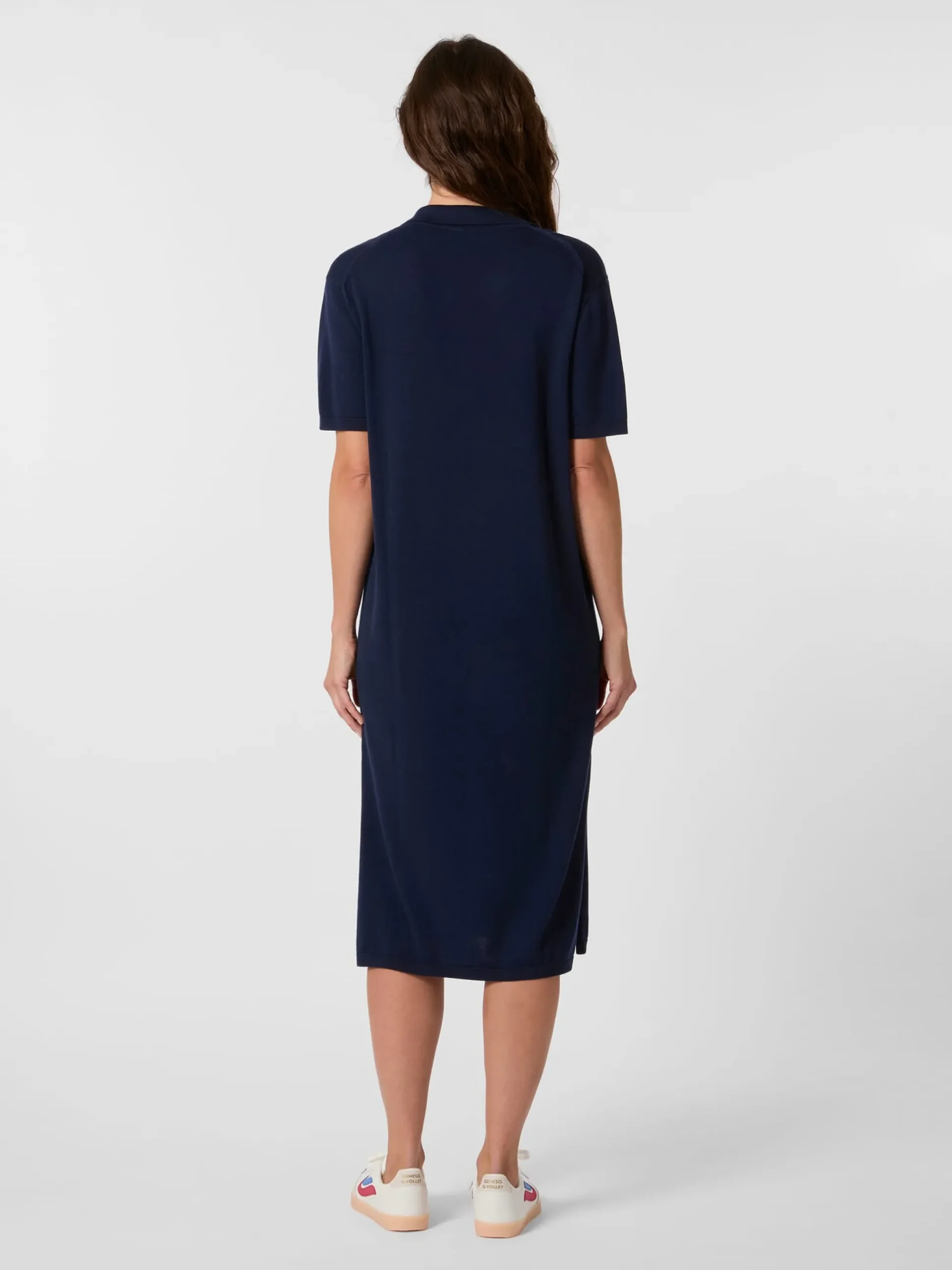 Das feine, glatte Gestrick dieses Kleides liegt leicht und schmiegsam auf der Haut. Gefertigt ist es zu gleichen Anteilen aus kontrolliert biologisch angebauter Baumwolle und Modal (TENCEL™), einer regenerativen Zellulosefaser, die aus natürlich wachsendem Buchenholz gewonnen wird und für ihre außergewöhnliche Weichheit, Atmungsaktivität und Flexibilität bekannt ist. Das ungefütterte Kleid ist mit Polo-Kragen und feinen Rippenstrickbündchen an Ärmeln und Rumpf gearbeitet. Die lockere, gerade Passform in Midilänge und die langen Seitenschlitze sorgen für viel Bewegungsfreiheit. Dank seines schnörkellosen, puristischen Designs lässt sich das Strickkleid vielseitig kombinieren, ob zu sportlichen, lässigen oder eleganten Outfits.