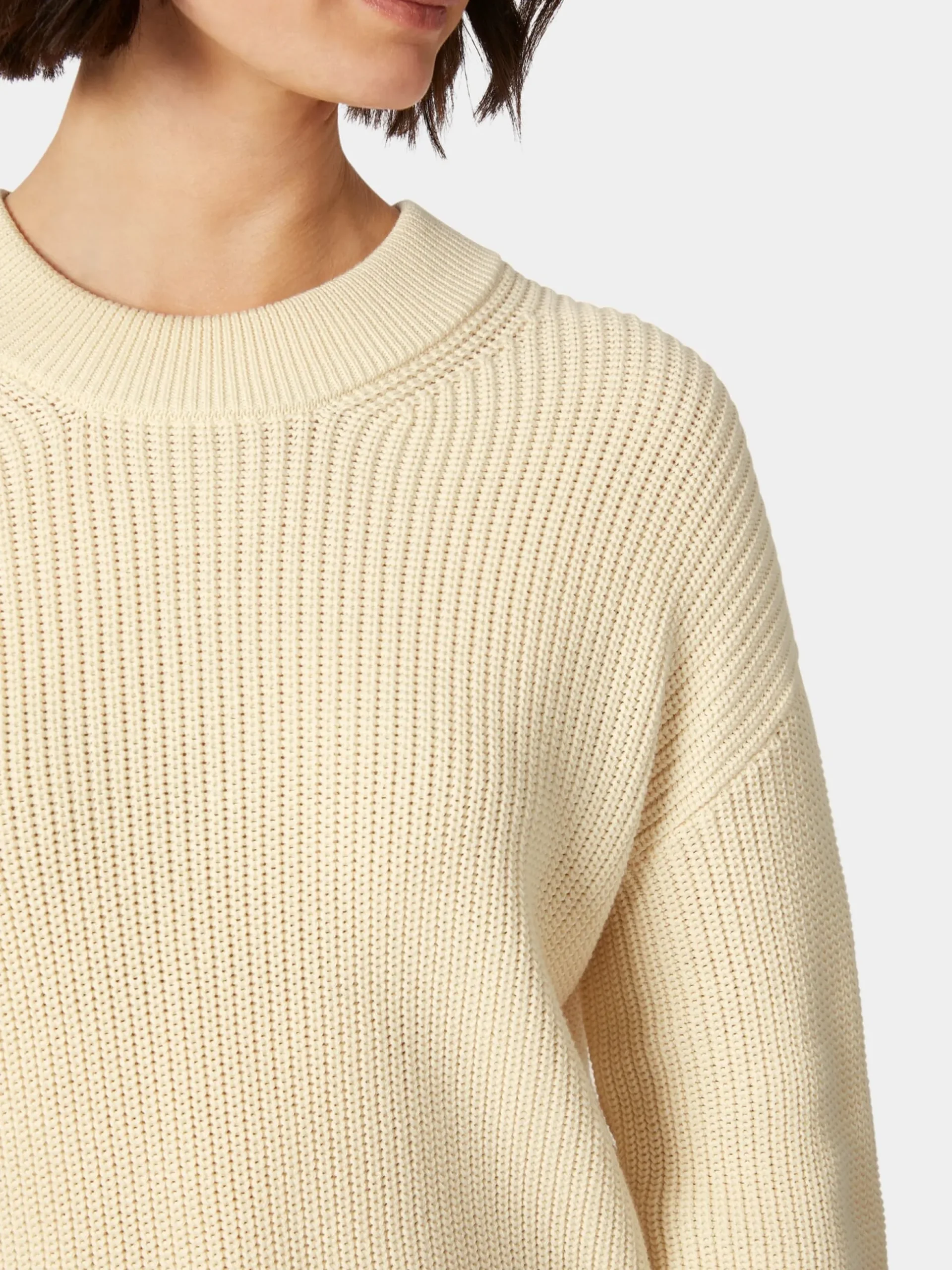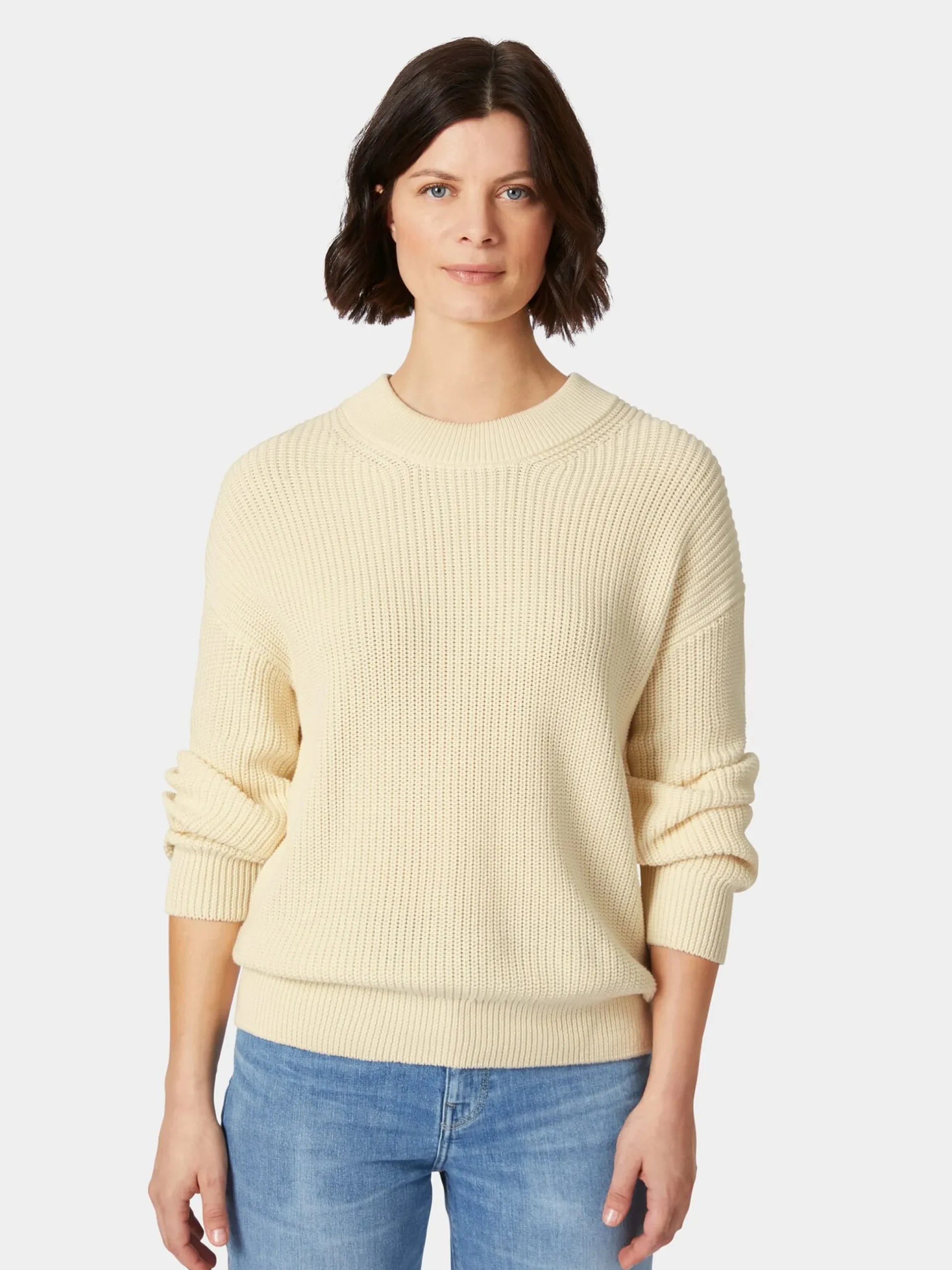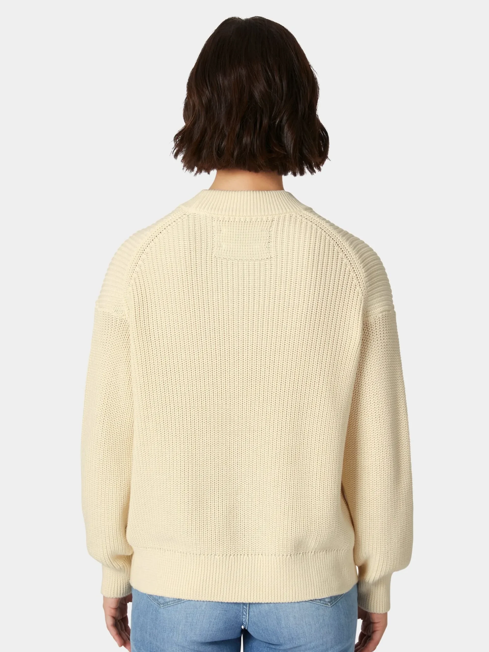 Überaus komfortabel ist dieser Strickpullover nicht allein durch seine lockere Passform, auch Material und Verarbeitung unterstützen den Tragekomfort. Armedangels verwendet hier hautsympathische, kontrolliert biologisch angebaute Baumwolle, die im Patentstrickverfahren zu einem voluminösen, elastischen und besonders luftdurchlässigen Gestrick verarbeitet wird. So schenkt Ihnen der Pullover selbst bei steigenden Temperaturen ein rundum angenehmes Tragegefühl. Gearbeitet ist er mit überschnitten Schultern, Rundhalsausschnitt und Rippenstrickbündchen an Hals, Ärmeln und Rumpf.