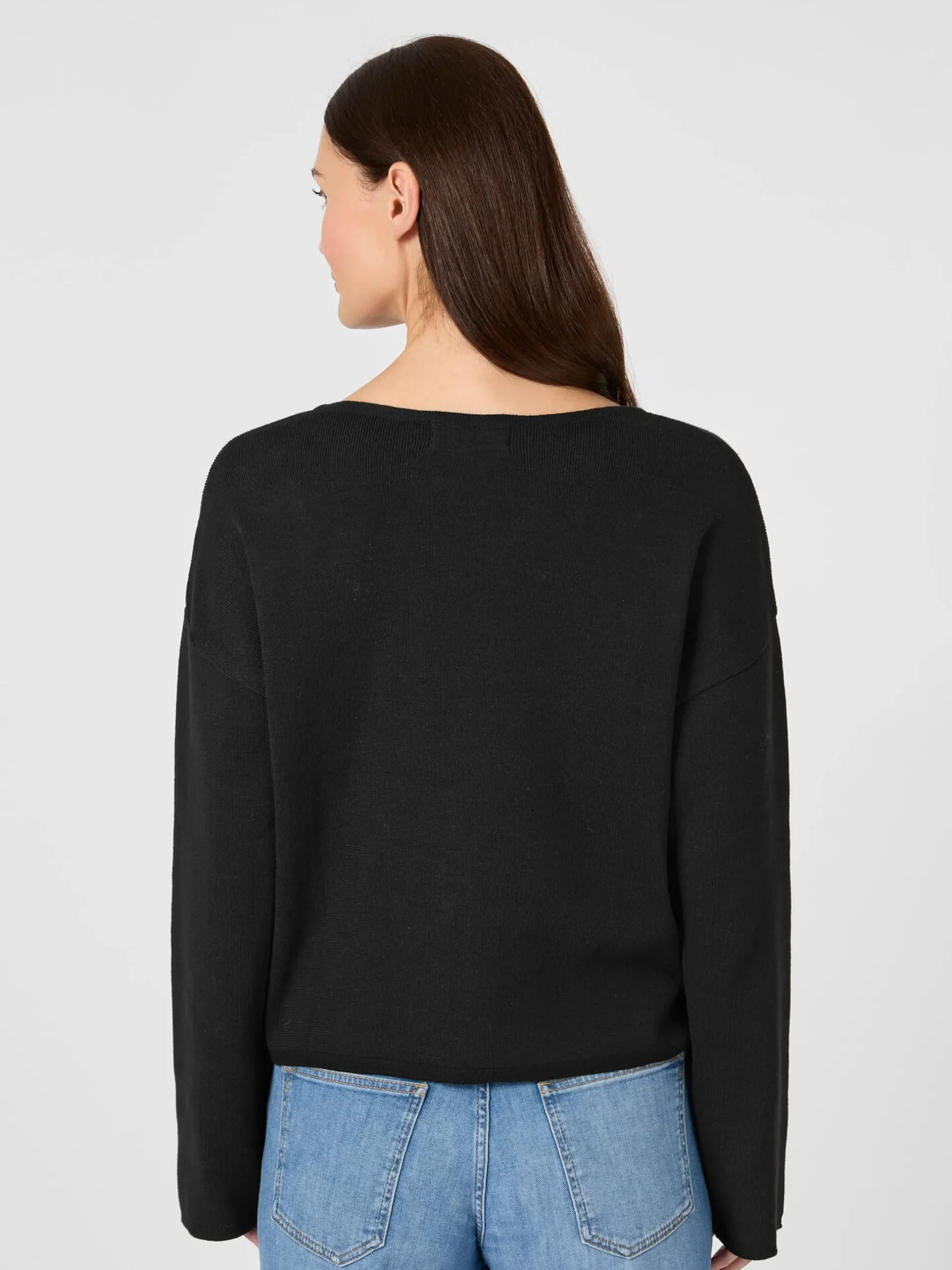 Dieser glattgestrickte Pullover überzeugt in Schnitt und Materialwahl. Das feine und leichte Gestrick besteht aus kontrolliert biologisch angebauter Baumwolle, was es hautsympathisch und atmungsaktiv macht. Der weite Schnitt mit überschnittenen Schultern erhöht den Tragekomfort noch und sorgt für einen lässigen, entspannten Look. Ein zeitloses, schlichtes Basisstück für die Übergangszeit, das sich vielseitig kombinieren lässt – ob zu Hose oder Rock, solo oder unter einem Blazer getragen.