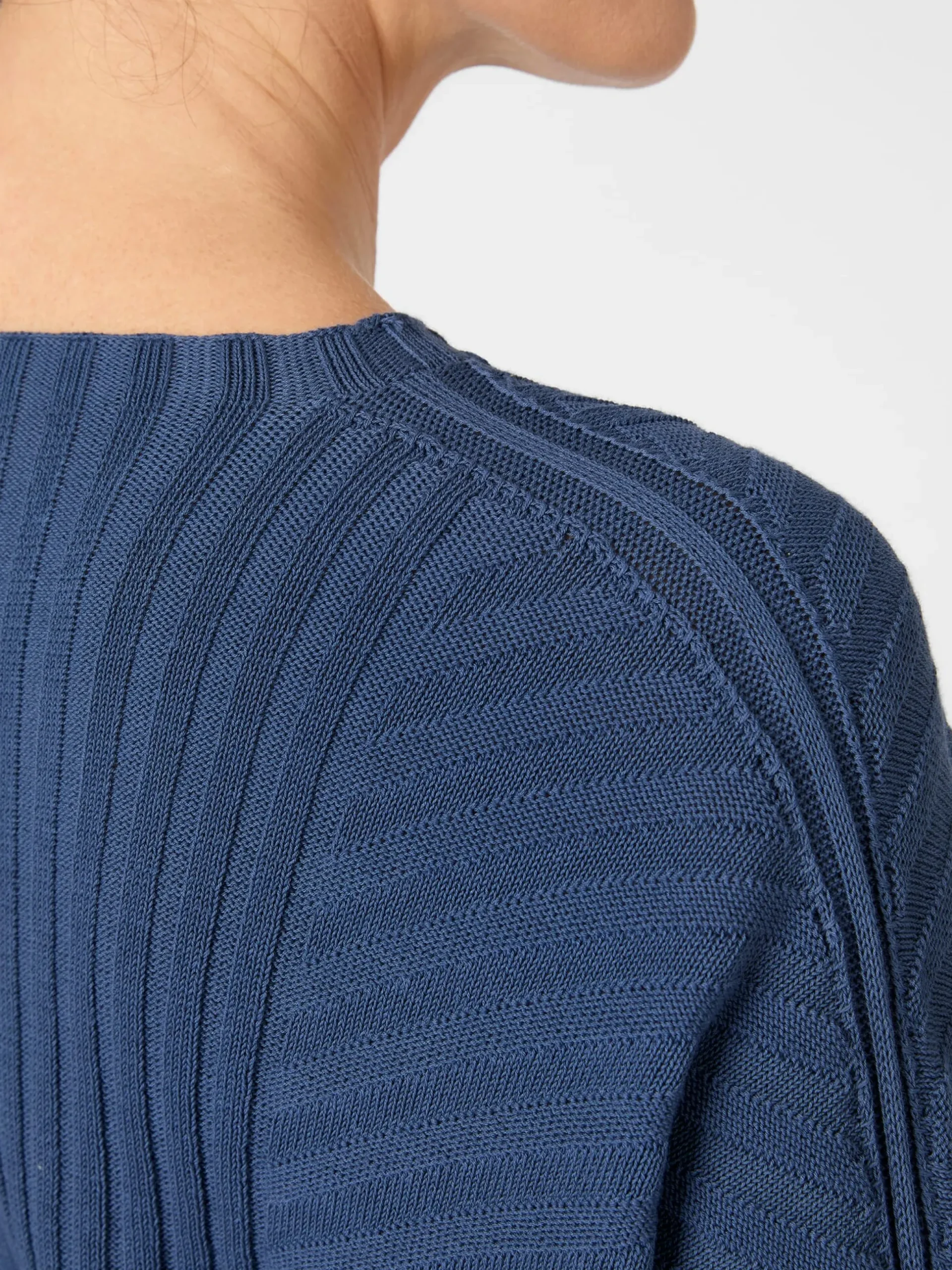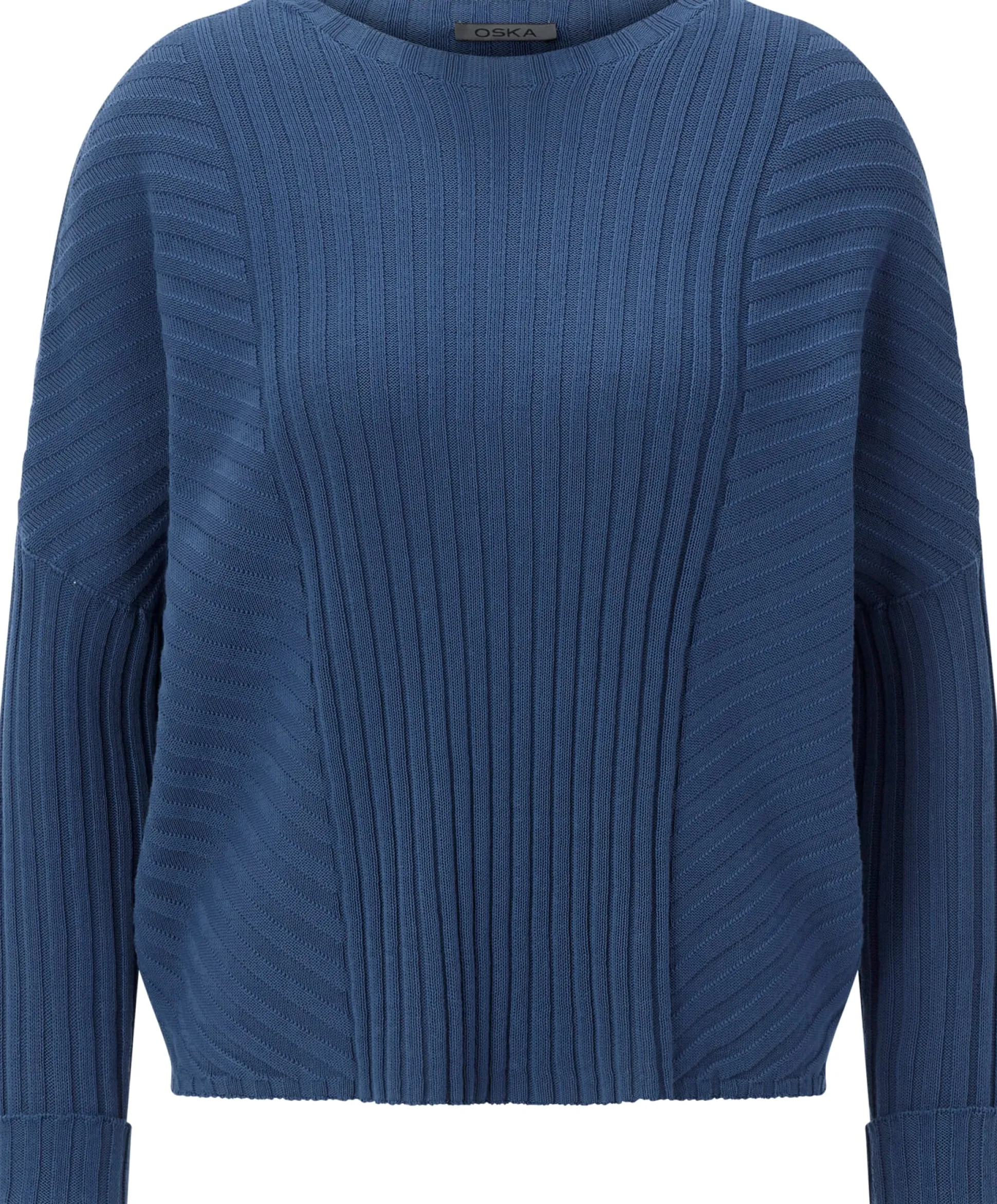 Das markante plastische Strickbild mit längs und diagonal verlaufenden Rippen verleiht diesem Strickpullover eine raffinierte dynamische Optik. Oska fertigt ihn aus reiner Baumwolle, was ihn besonders hautsympathisch macht. Seine kastige Form mit stark überschnittenen Schultern erhöht den Tragekomfort und sorgt für eine entspannte Silhouette. Die in Rippenstricktechnik gearbeiteten Ärmel liegen an, ohne einzuengen.