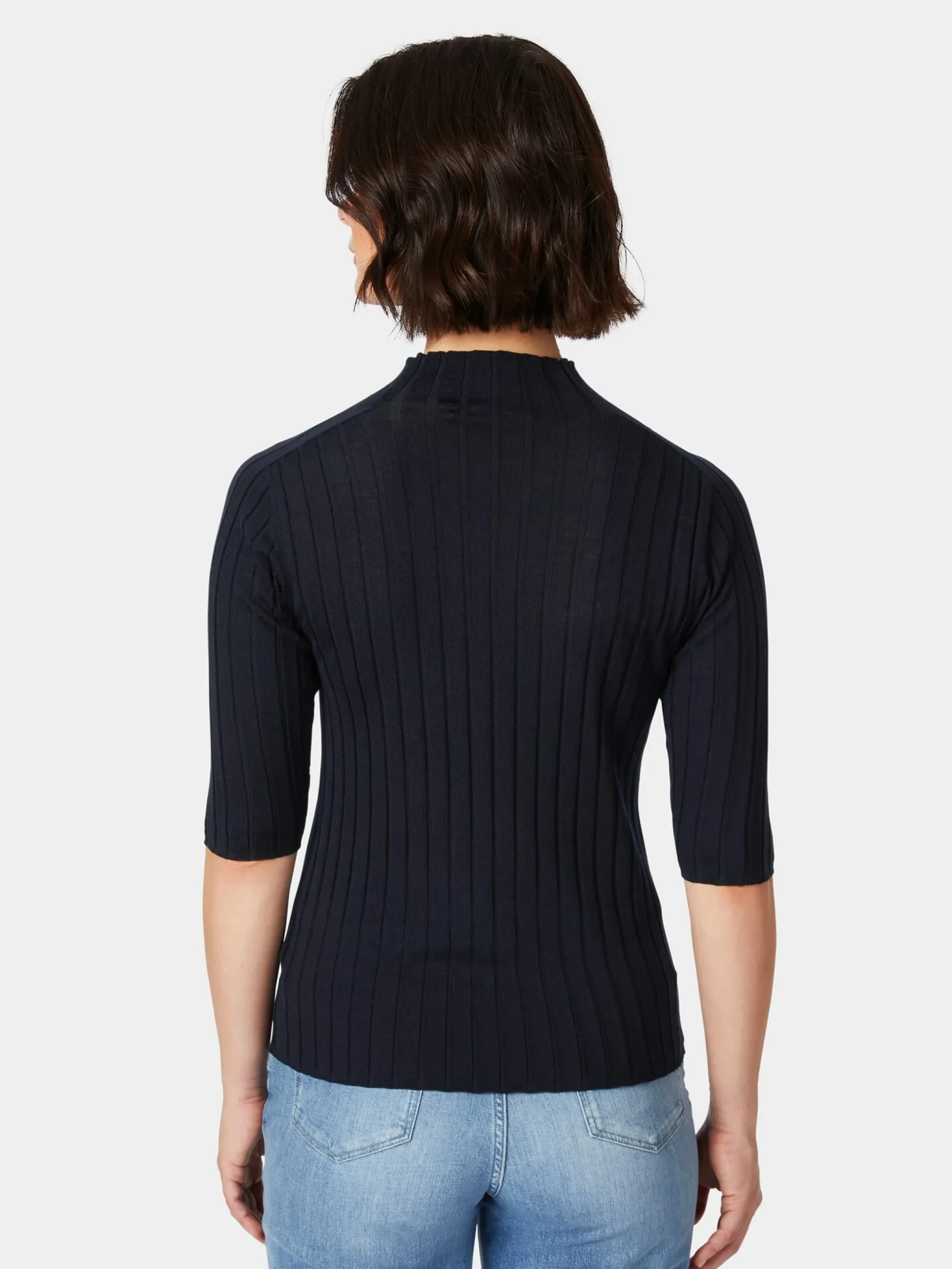 - Dehnbarer Rippenstrick: passt sich gut der Körperform an